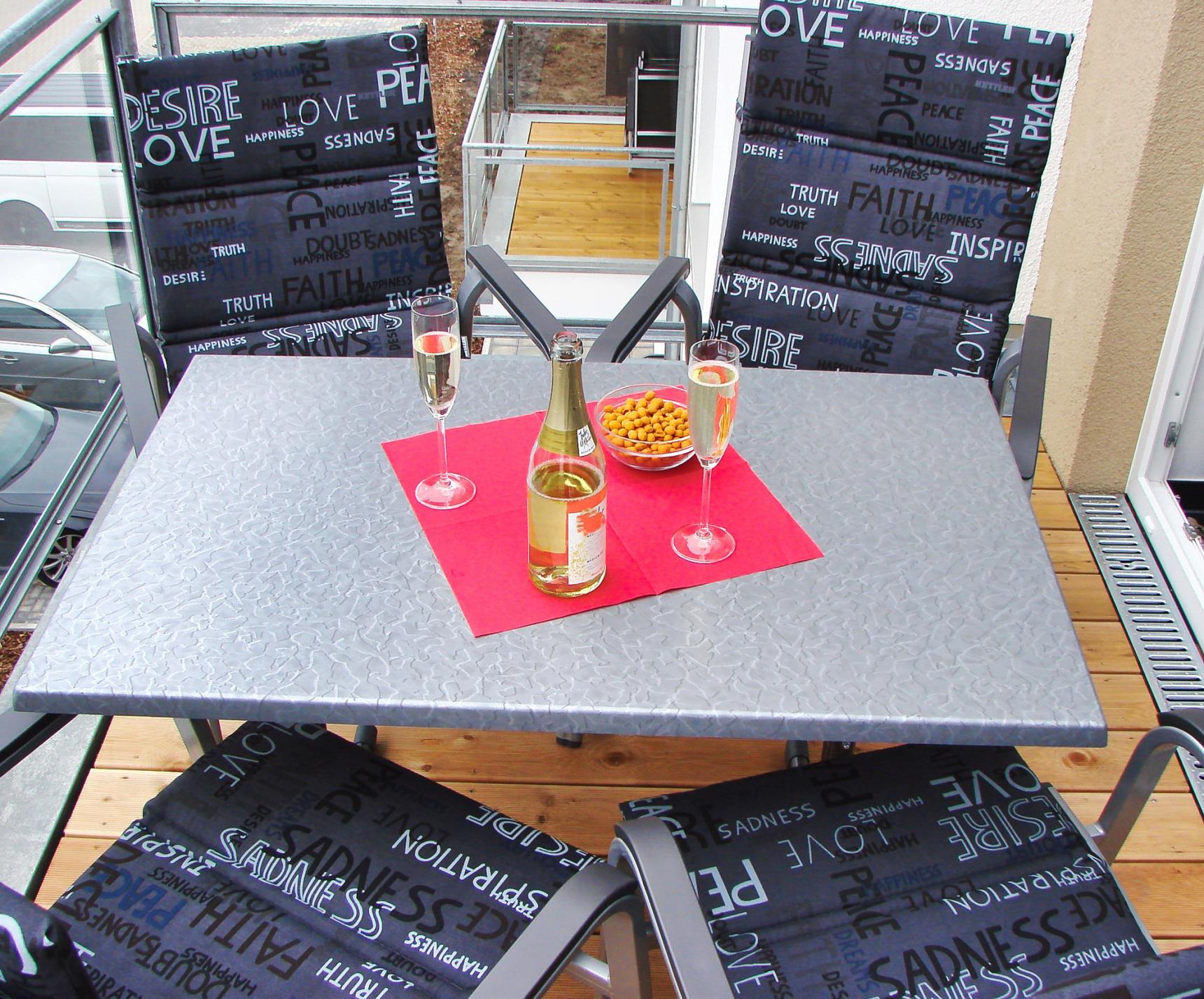 Auf dem Balkon haben Sie die Möglichkeit, die Abendsonne bei einem Glas Wein oder einem Tee auf dem Südwest-Balkon zu genießen. An einem großen Tisch mit 4 Stühlen samt Auflagen, Sonnenschirm und einer Wetterstation können Sie den nächsten Tag planen.