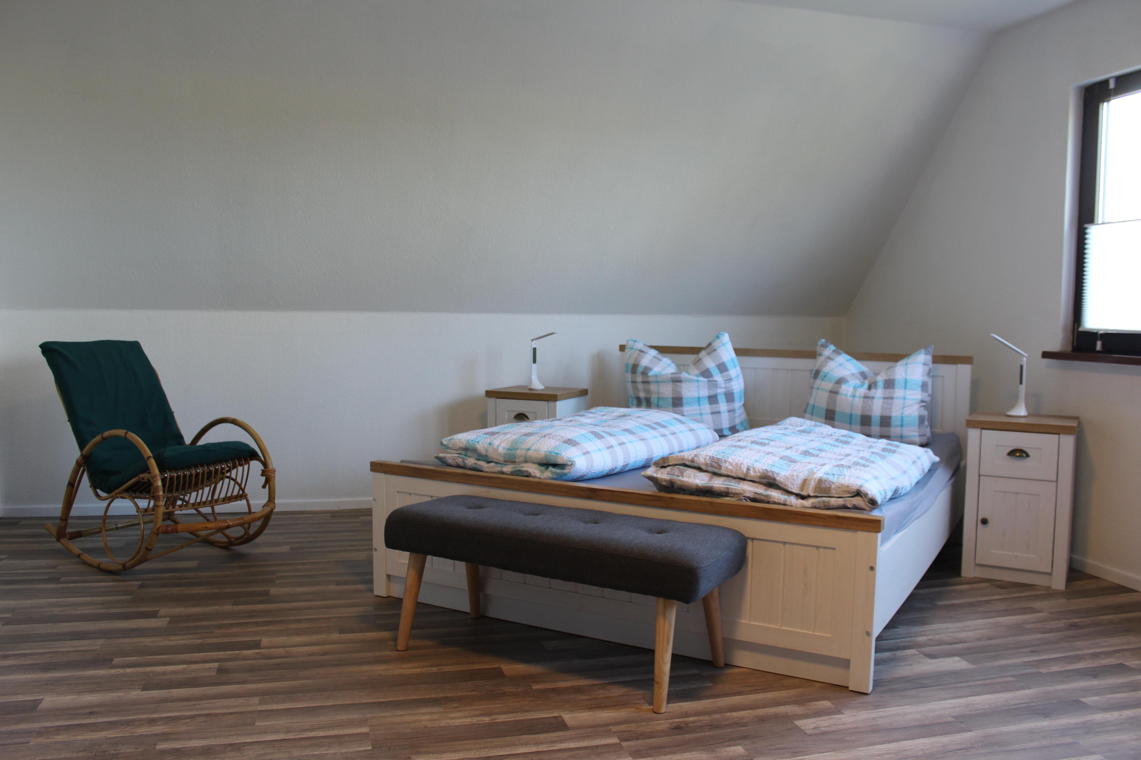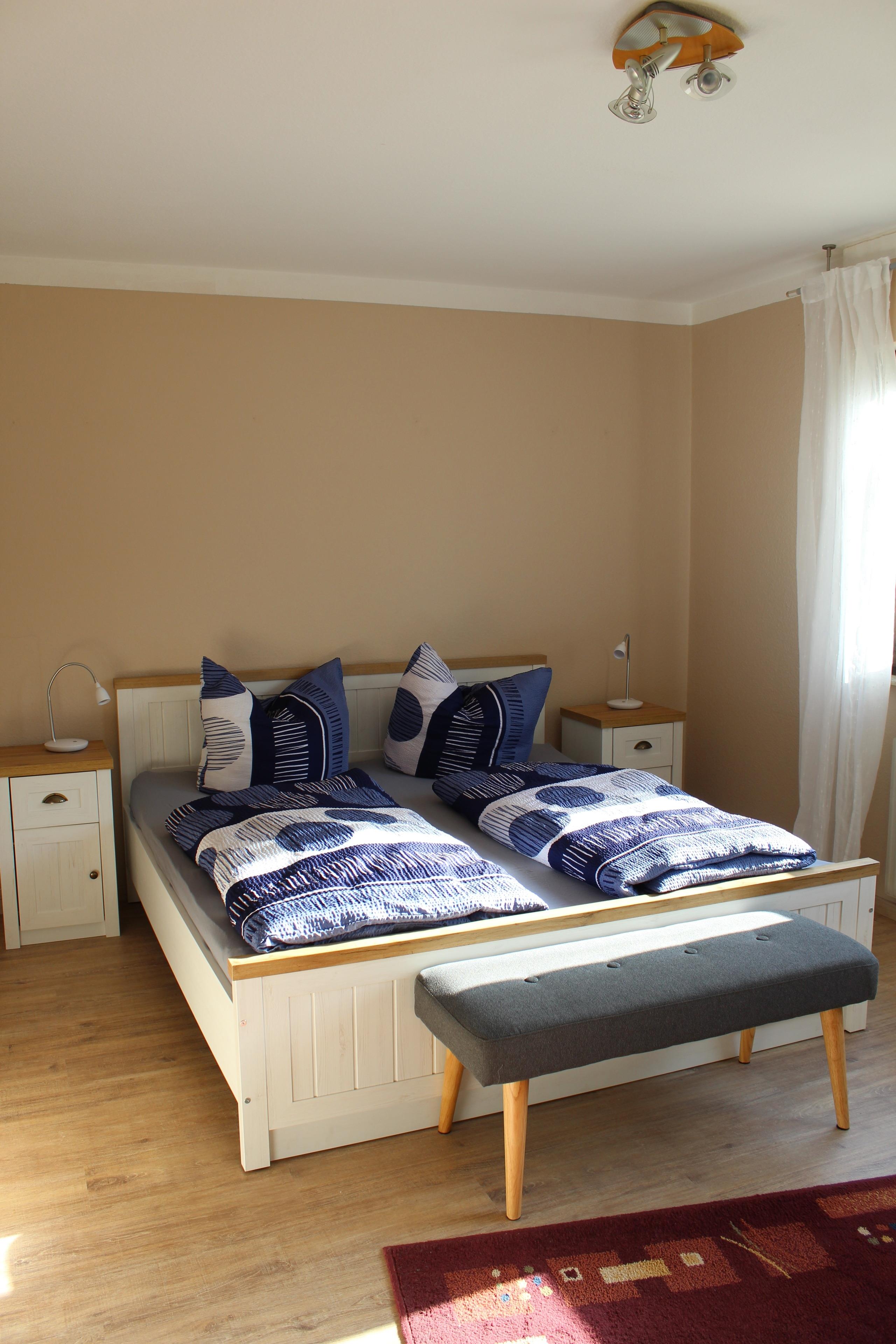 1 Schlafzimmer, mit Doppelbett und Kleiderschrank