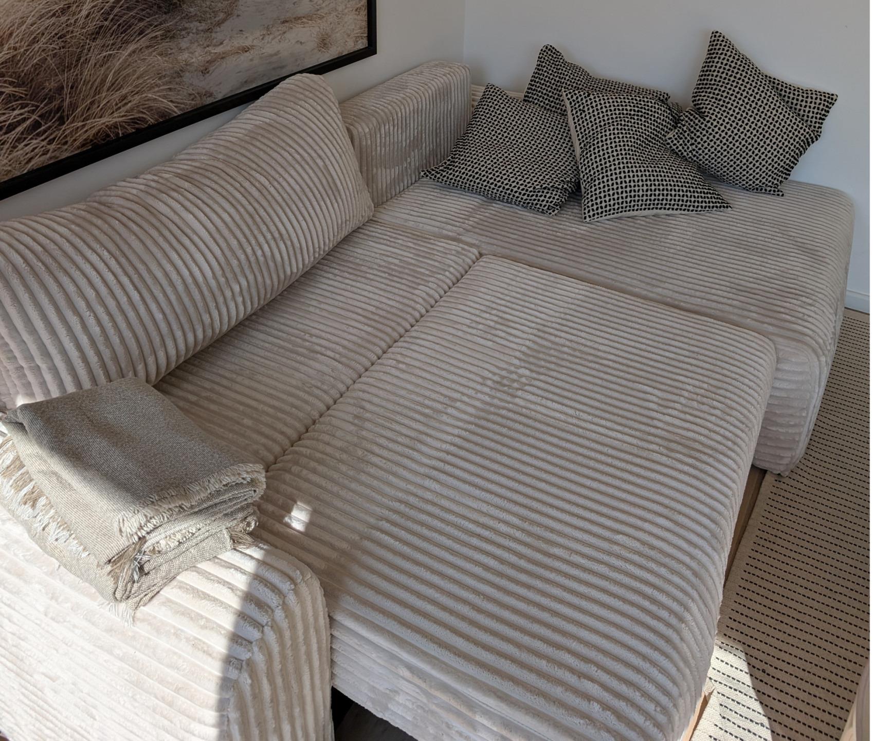 Im Wohnzimmer steht für eine 5 Person ein Schlafsofa zur Verfügung.
