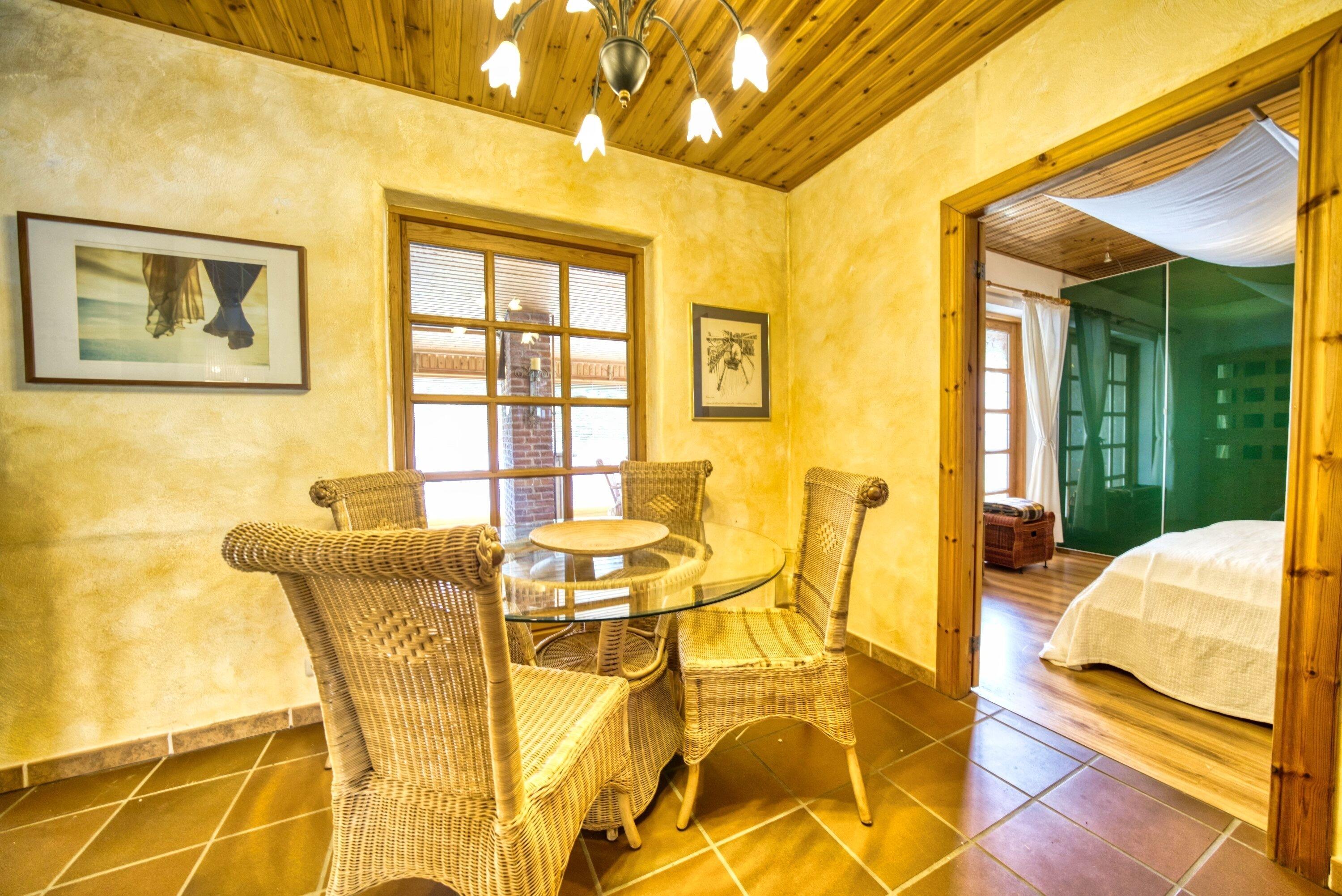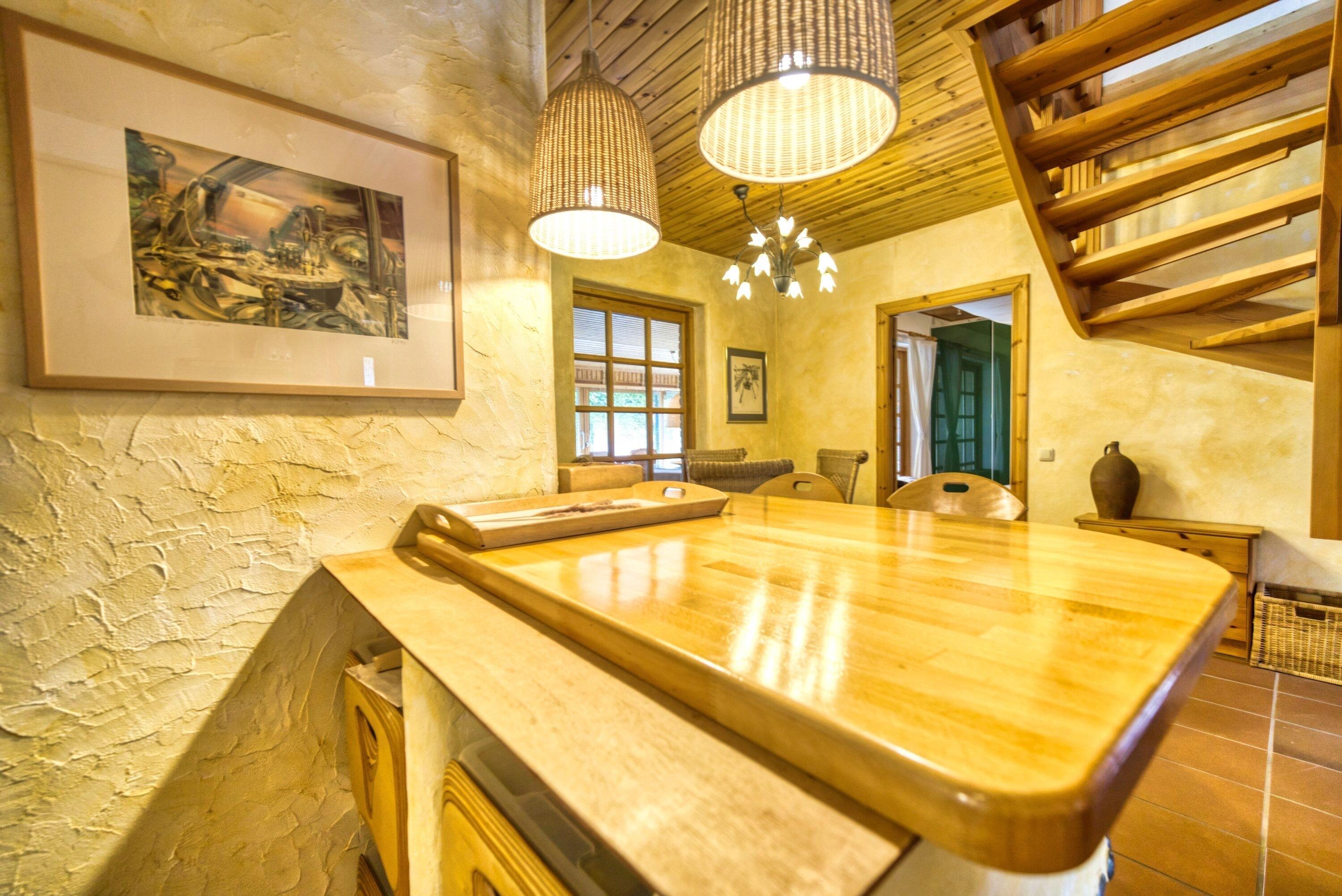 Die voll ausgestattete Küche bietet alles, was Sie zum Kochen benötigen: Backofen, Cerankochfeld, Geschirrspüler, Kühlschrank und viele praktische Küchenutensilien. Der separate Essbereich lädt zu gemeinsamen Mahlzeiten und geselligen Runden ein.