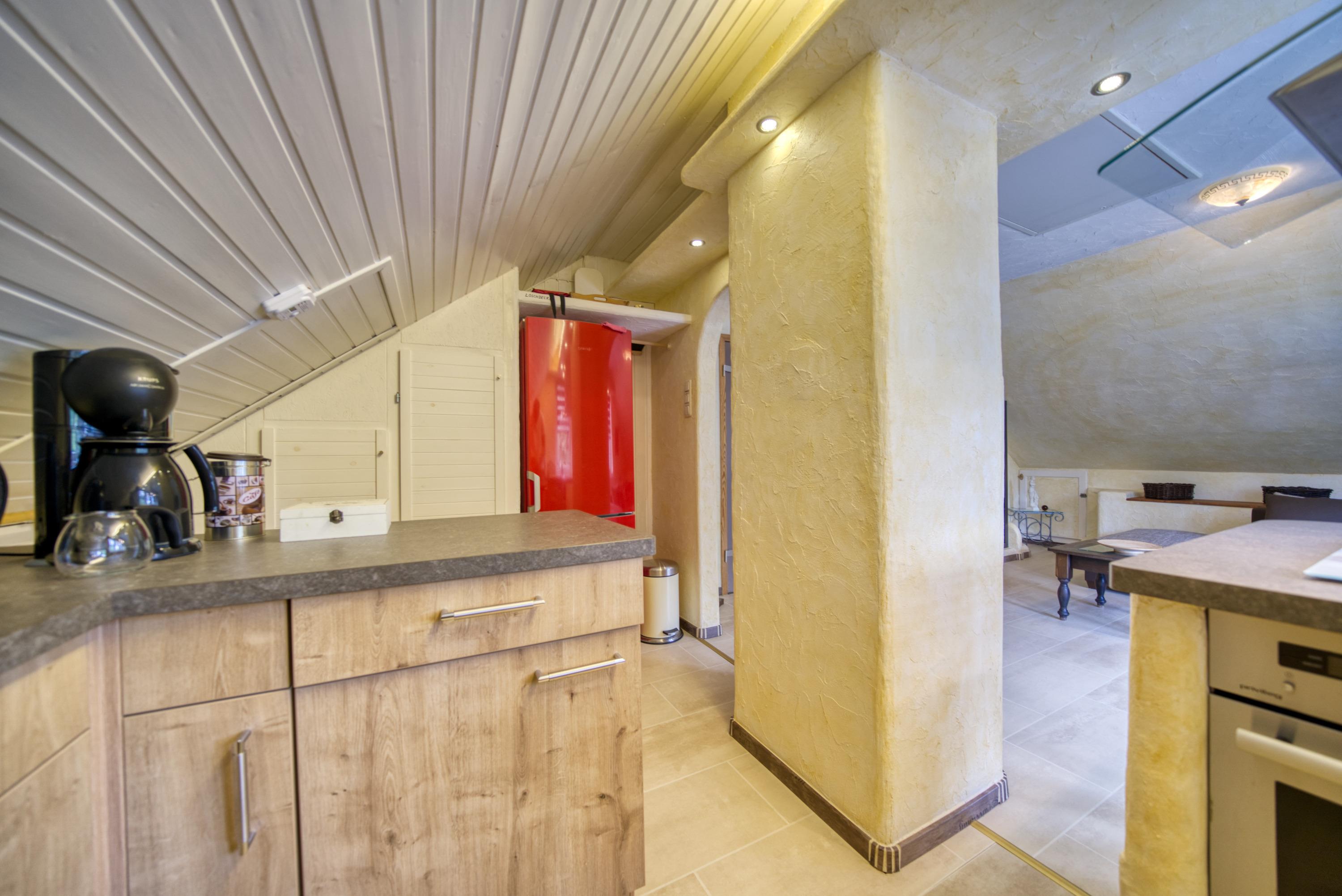 Die moderne Küche ist komplett ausgestattet mit Backofen, Cerankochfeld, Geschirrspüler, Kühlschrank, Kaffeemaschine und allen wichtigen Utensilien für ein entspanntes Kocherlebnis.
