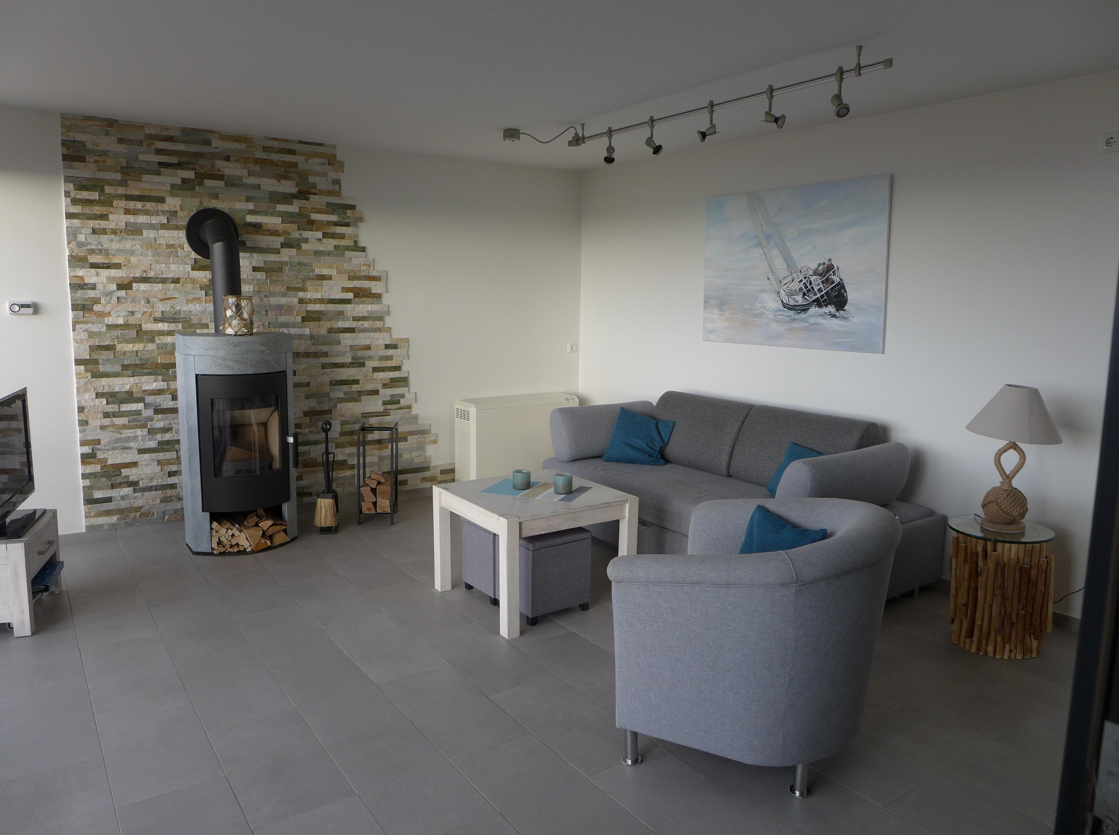 Das lichtdurchflutete Wohnzimmer mit direktem Ostseeblick lädt in allen Jahreszeiten zum Entspannen ein. Genießen Sie am Kaminfeuer bei einem Glas Wein diesen Anblick und lassen Sie ein paar Tage mal den Alltag vergessen. Neu ist der große Holz-Kaminofen, der zusätzliche Wärme an kühleren Tagen gibt. Das Holz hierfür kaufen die Gäste selbständig in den nahe gelegenen Supermärkten.