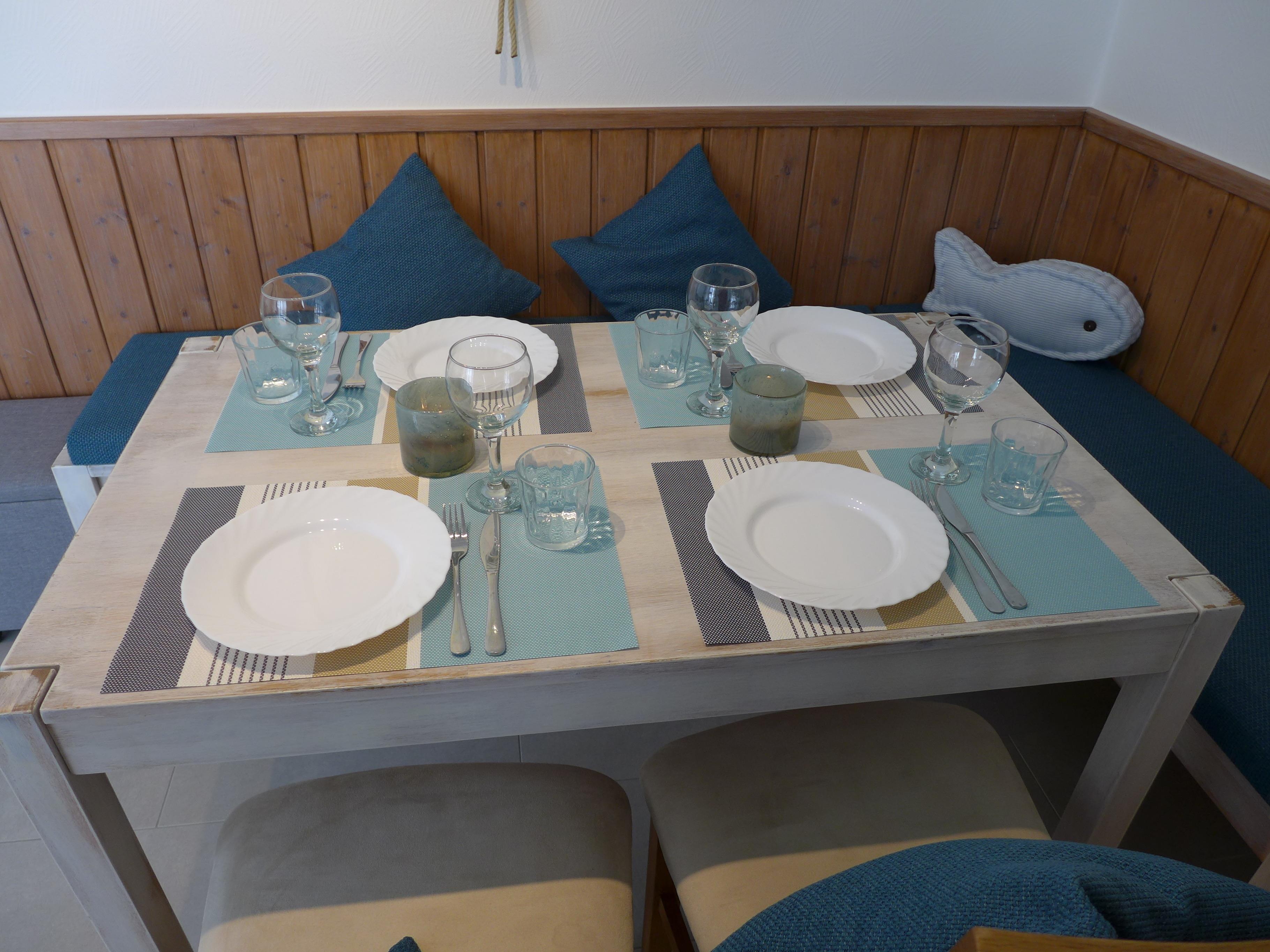 Das Ferienhaus ist vollständig eingerichtet, 2 Einzelbetten 90x200 cm im Kinderzimmer, die hintereinander stehen und einer sehr guten Schlafcouch für 2 Personen im Wohnraum mit jeweils einem 90x200 cm Bett.