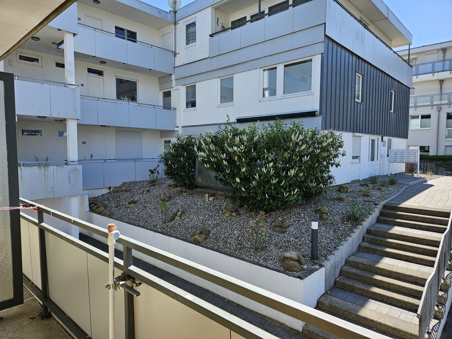 Der Zugang zu dieser Ferienwohnung erfolgt über einen seitlich am Haus liegenden Weg, der den Parkplatz mit der Strandpromenade verbindet.