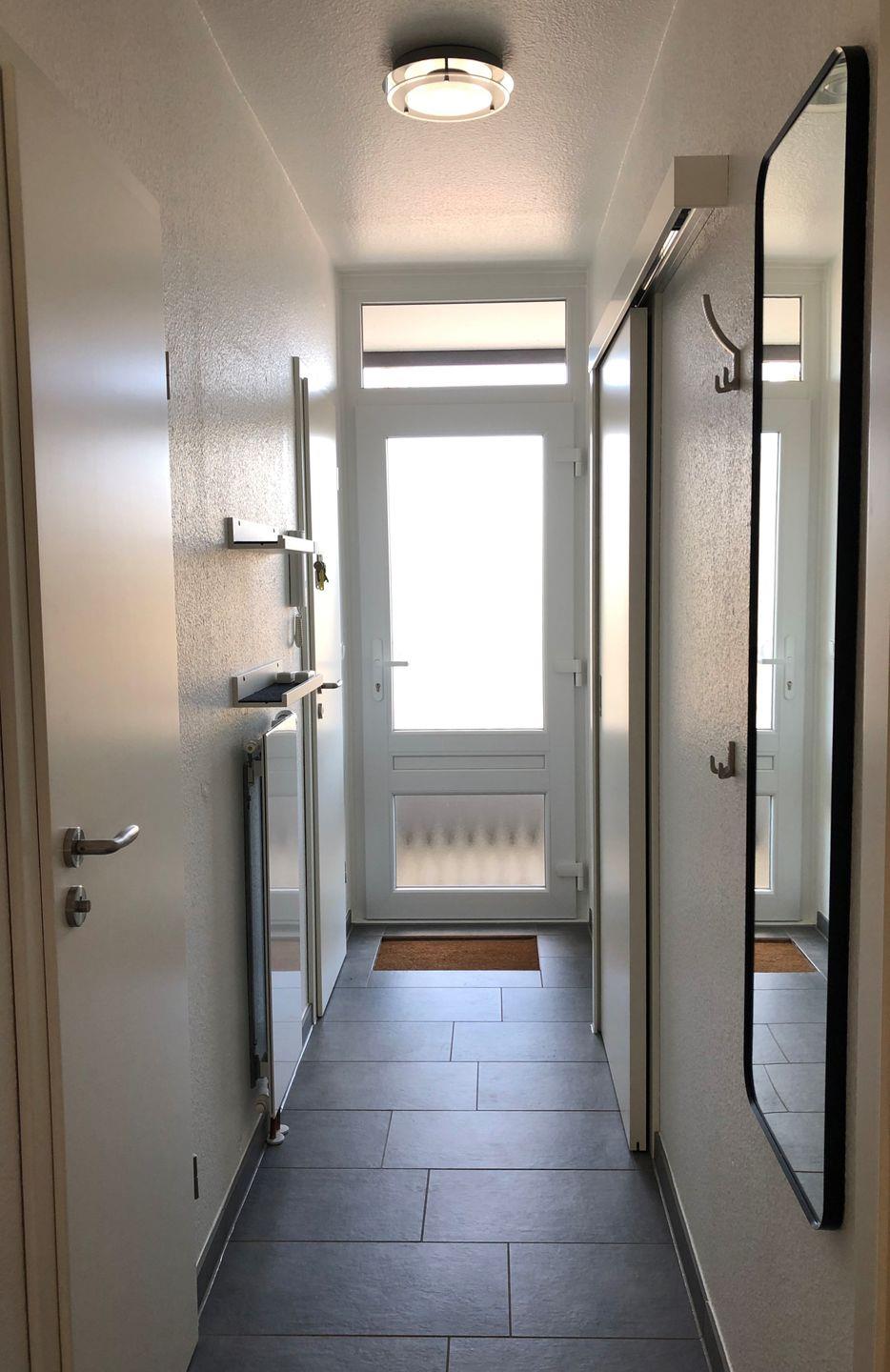 Das innenliegende Duschbad wurde ebenfalls 2021 komplett saniert und stimmt Sie stilvoll schon morgens auf einen herrlichen Urlaubstag ein. Die hochwertige Einrichtung besteht aus Dusche mit Glaswand, Hänge-WC, Handtuchheizkörper, Waschbeckenunterschrank mit Schubladen und einem beleuchteten Spiegelschrank mit 2 Steckdosen.