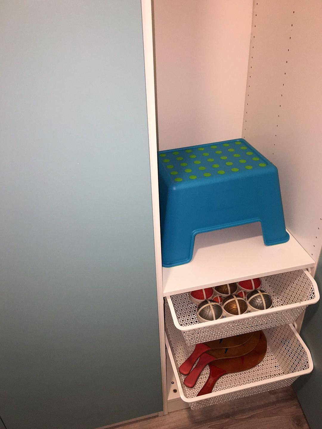 Im ersten Schlafraum stehen ein Etagenbett (2*90*200 cm) sowie ein viertüriger Kleiderschrank mit Kleiderstange, Schubladen und Regalfächern bereit. Hier finden alle großen und kleinen Urlauber genügend Platz Ihren Kofferinhalt zu verstauen.