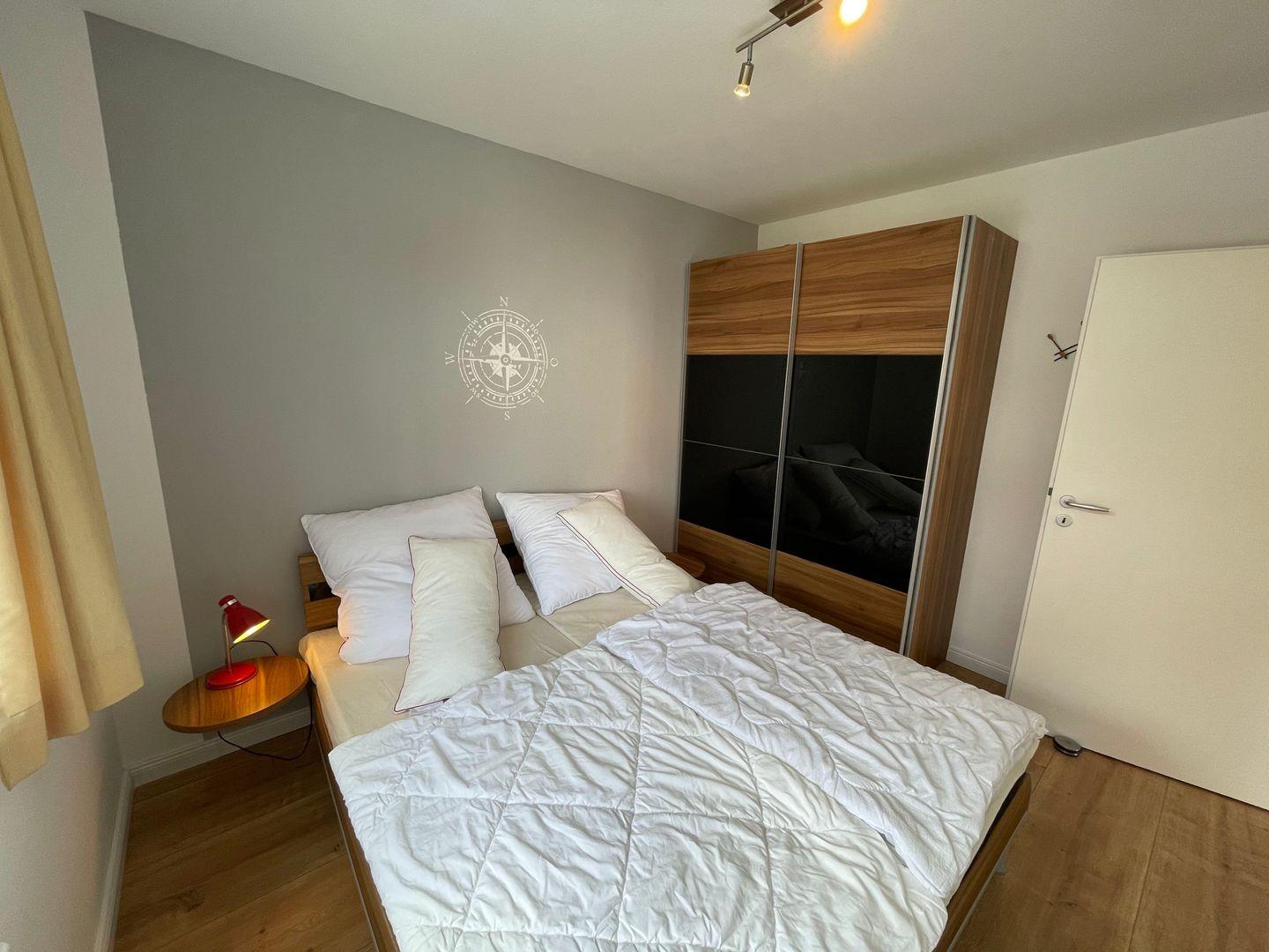 Im weiteren Schlafzimmer bietet ein großes Doppelbett (2*80*200cm) Platz für ruhige Nächte und ein großer Kleiderschrank viel Stauraum für Ihre Urlaubsgarderobe.