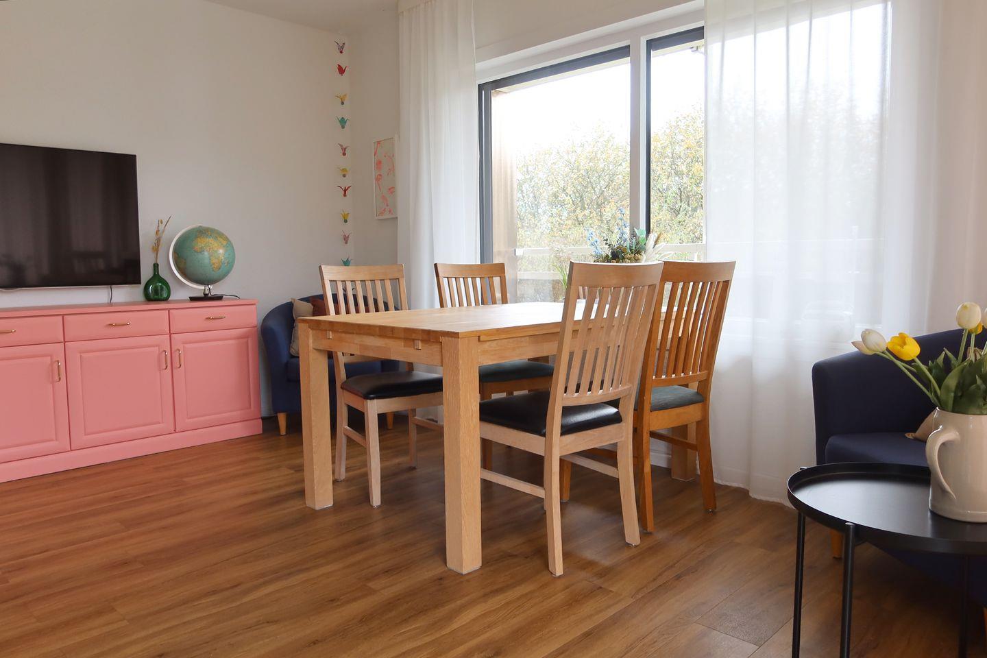 Den wunderbaren Blick genießen Sie ebenfalls aus dem hellen Wohnzimmer durch seine großen Fensterfronten von dem gemütlichen Ecksofa oder vom großen Esszimmertisch aus. Der Sitzbereich lädt zum Verweilen oder zu gemütlichen Spieleabenden ein.