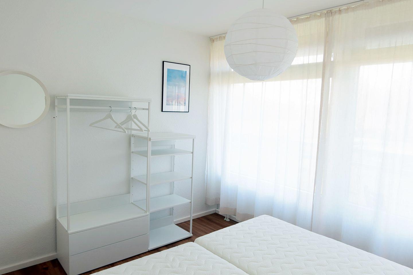 Im Schlafzimmer sorgt ein großes gemütliches Doppelbett (2*90*200) für entspannte Nächte, ein Kleiderschrank bietet Verstauraum und zu erwähnen ist, dass der Raum über Außenrolläden und Innenrollos verfügt. Somit ist eine individuelle Verdunklung nach eigenen Bedürfnissen gegeben, auch die anderen Räumlichkeiten bieten diesen Komfort.