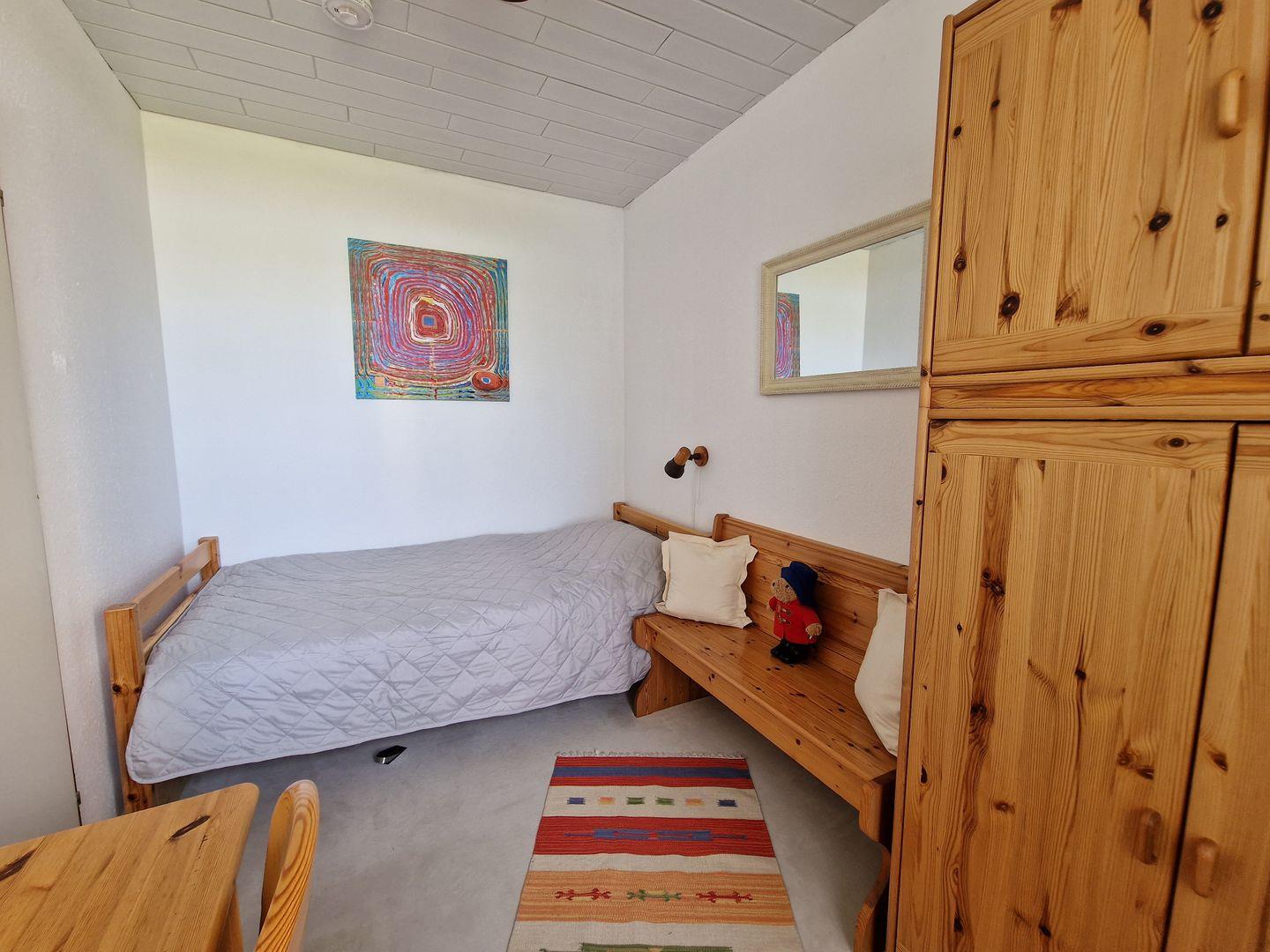 Das zweite Schlafzimmer hält eine Schlafmöglichkeit (90cm*200cm), einen Kleiderschrank und einen Schreibtisch vor.