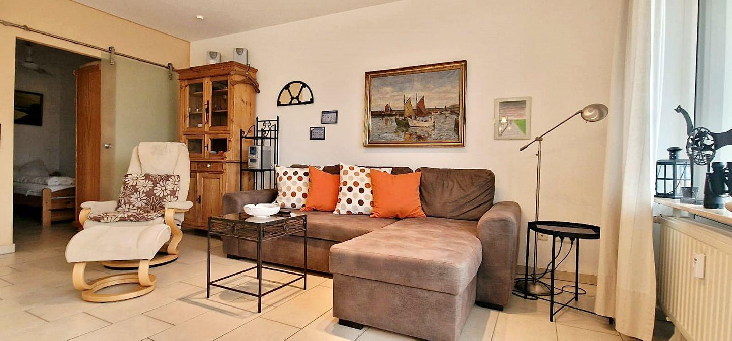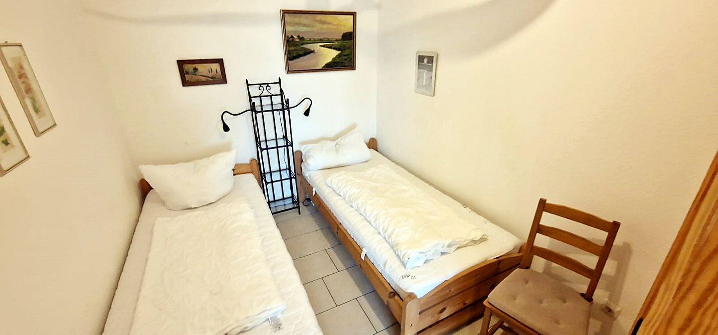 Der durch eine Schiebetür abgetrennte Schlafbereich bietet zwei Einzelbetten (je 90*200 cm) für eine entspannte Nacht sowie viel Platz im großen Schrank für ihre Urlaubsgarderobe. Im Wohnbereich mit offener Küchenzeile finden Sie eine Couch über Eck, einen bequemen Fernsehsessel sowie eine schöne Anrichte. Der urige Esstisch mit Sitzbank und Sitzstühlen lädt zum Verweilen ein. Zu Ihrer Unterhaltung steht Ihnen ein Flachbildfernseher und eine Kompaktmusikanlage bereit.