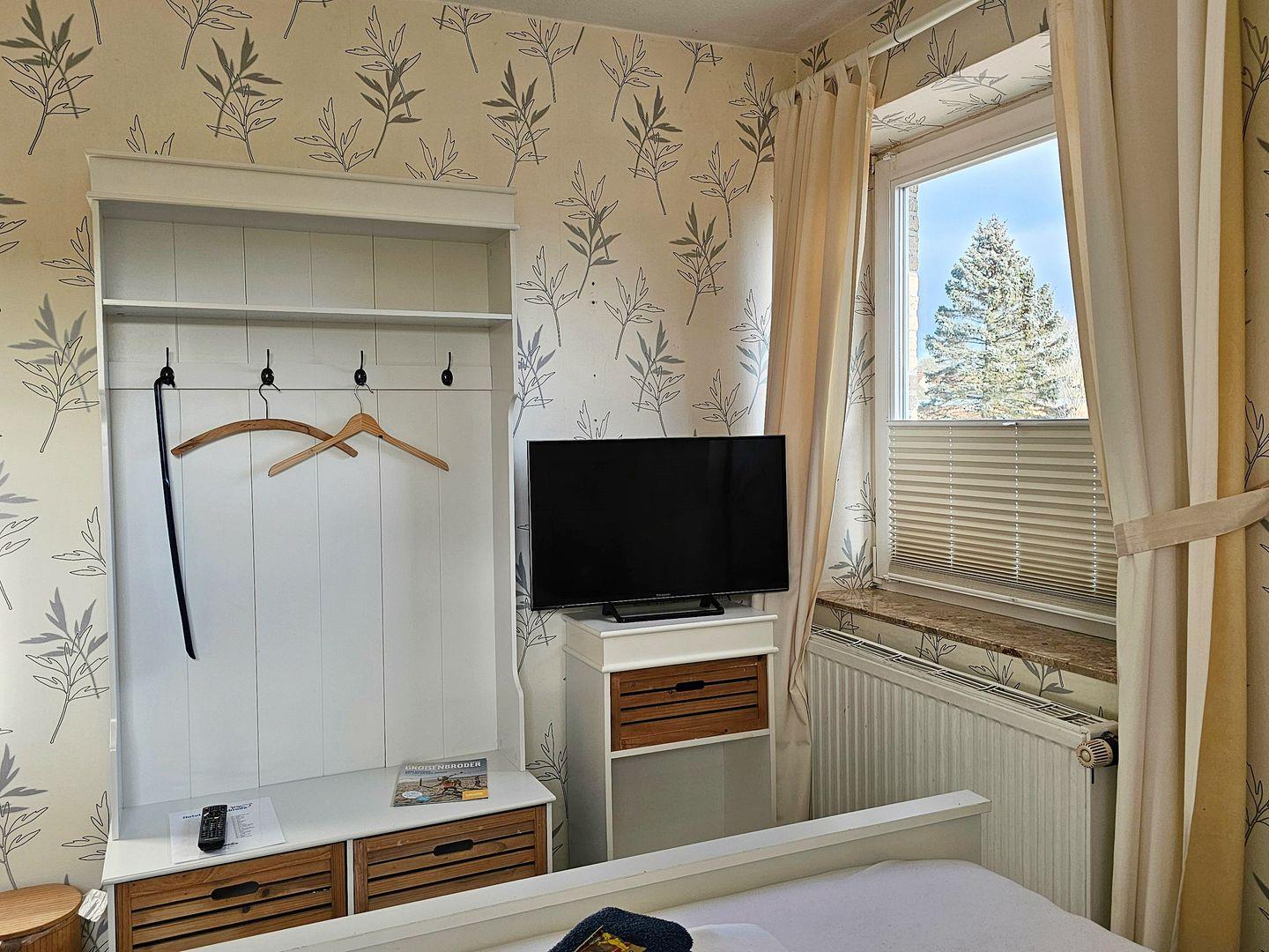 In diesem schnuckeligen lichtdurchflutenden Einzelzimmer befindet sich ein großes Einzelbett (140*200) sowie eine kleine gemütliche Sitzgelegenheit mit Esstisch. Ein offener Kleiderschrank sowie weitere Kommoden bieten gute Verstaumöglichkeiten für ihre Urlaubsgarderobe.