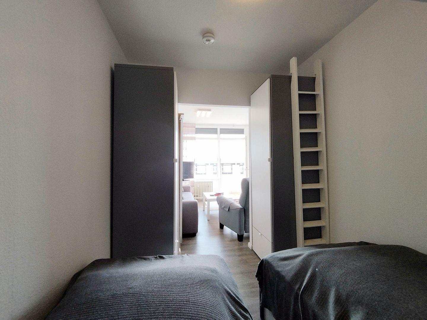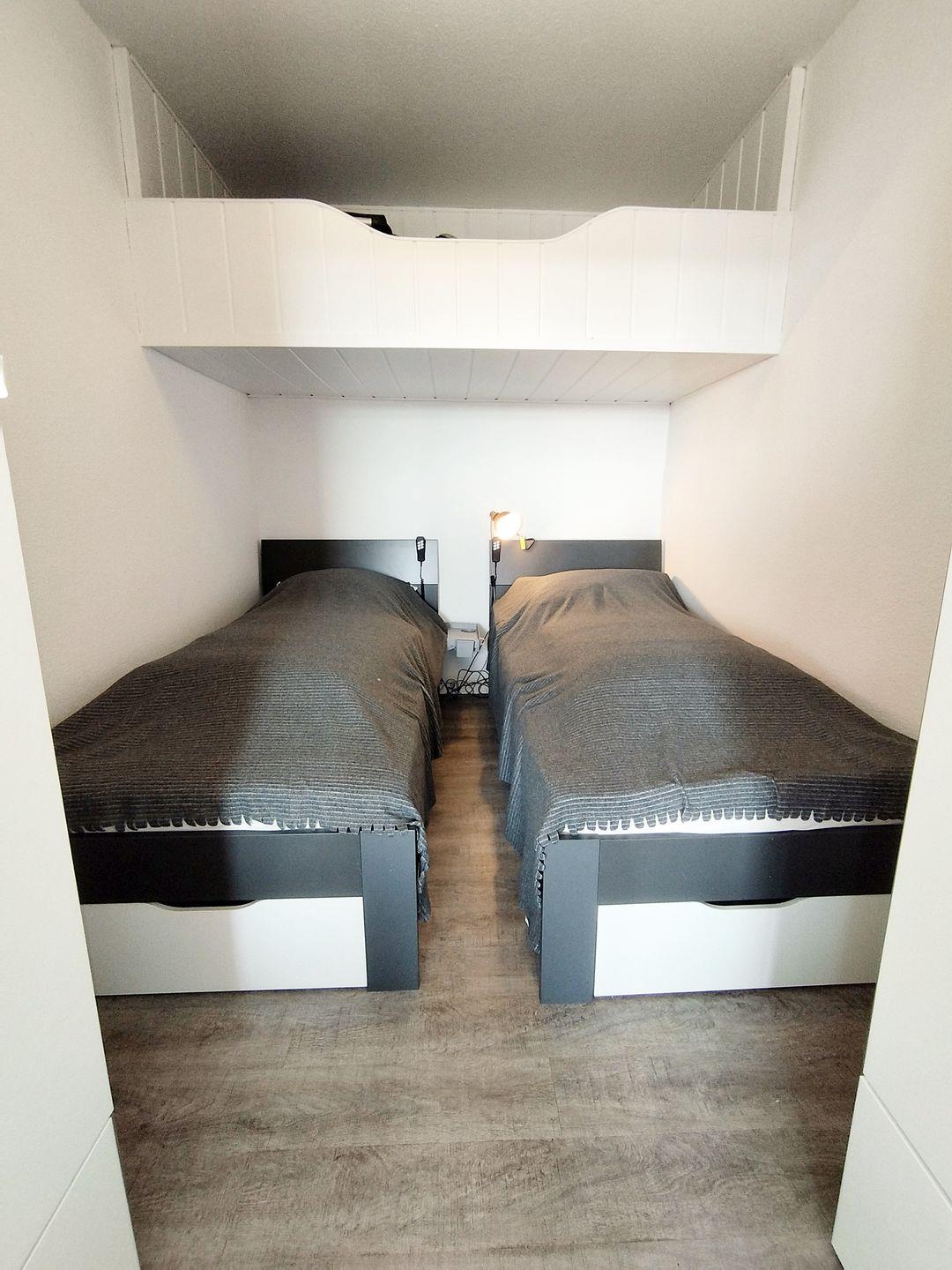 Im Schlafbereich stehen Ihnen zwei Einzelbetten für entspannte Urlaubsnächte bereit. Die Wohnung lässt sich über Aussenjalousien verdunkeln.