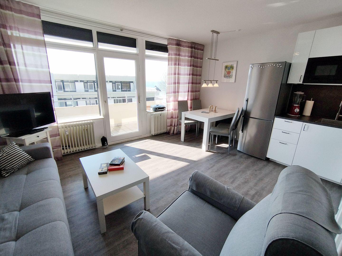 Die helle und moderne Wohnung für 4 Personen lädt Sie herzlich ein. In kürzester Zeit erreichen Sie die neue Promenade und den herrlich feinsandigen Südstrand – tagsüber Strandgenuss, Entdecken und Meererleben, und zwischendurch rundum Wohlfühlen in Ihrer Unterkunft mit Meerblick!