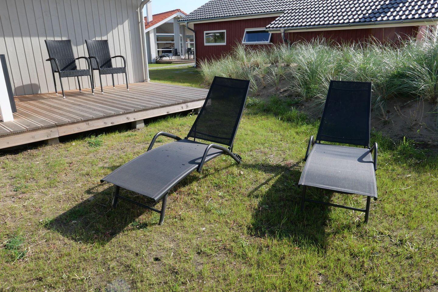 Der großzügige, offen gestaltete Wohn- und Küchenbereich ist der gemütliche Mittelpunkt des Hauses und schafft ein einladendes Raumgefühl. Die Küche ist vollwertig ausgestattet mit Spülmaschine, Kühlschrank mit Gefrierfach, Ceranfeld-Herd, Mikrowelle und Kaffeemaschine. Die große, bequeme Sofaecke lädt zum Entspannen ein, während am etwas abseits gelegenen Esstisch gemeinsame Mahlzeiten und kulinarische Köstlichkeiten in geselliger Runde genossen werden können. Im Wohnbereich befinden sich der Kaminofen, der Flachbild Sat-TV, ein DVD-Player bzw. Blue-Ray Player, eine Stereoanlage mit Radio. Von hier aus haben Sie Zugang zur teils überdachten, mit Gartentisch und Stühlen möblierten Terrasse, auf der Sie die langen Sommerabende genießen können. Zwei Sonnenliegen stehen Ihnen ebenfalls zur freien Verfügung.