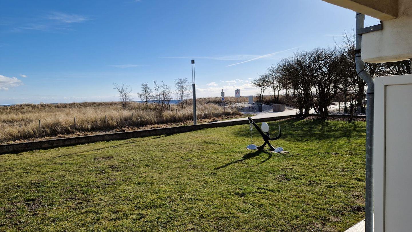 Ein besonderes Highlight ist die großzügige, überdachte Terrasse, auf der Sie bei schönem Wetter den herrlichen Meerblick und den Klang der Wellen genießen können. Gartenmöbel und Sonnenliegen laden dazu ein, die frische Ostseeluft zu atmen und sich zu entspannen. Die Lage der Wohnung direkt am Strand macht sie ideal für Wassersportler: Vom Schwimmen über Segeln bis hin zu Windsurfen stehen Ihnen zahlreiche Aktivitäten direkt vor der Tür zur Verfügung.