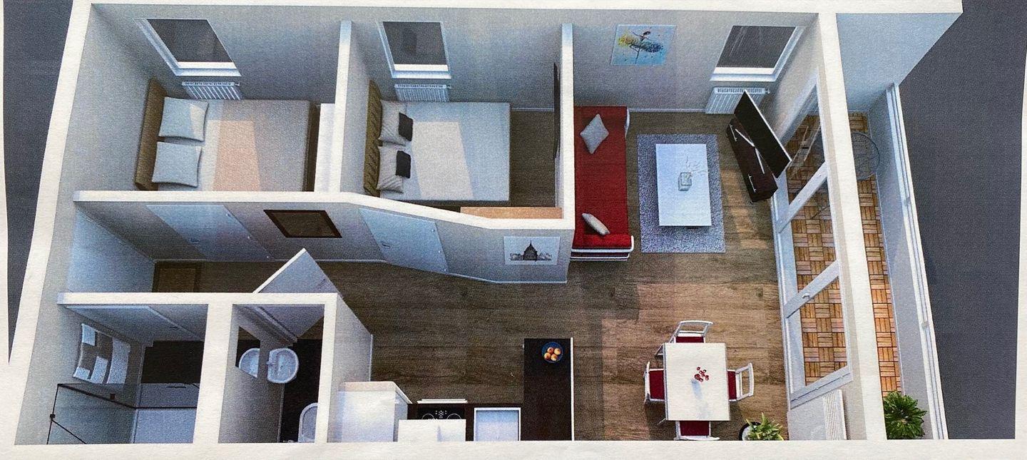 Dieses komplett renovierte Appartement besticht durch stilvolles Ambiente. Das durch Umbau vergrößerte Wohnzimmer mit integrierter L-Einbauküche bietet selbst beim Kochen einen herrlich direkten Ostseeblick aus dem 6. Stock.