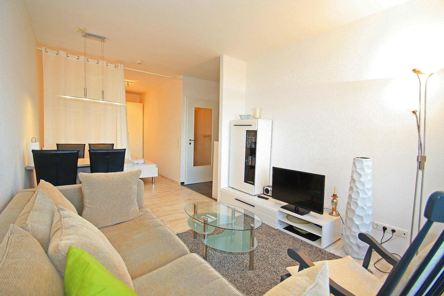 Die 46 qm große 2-Zimmer-Wohnung im ersten Stock mit frischer, heller Einrichtung begeistert durch Ihre strand- und promenadennahe Lage. Für bis zu 4 Personen bietet Sie die optimale Unterkunft für Ihren Familienurlaub am Meer.