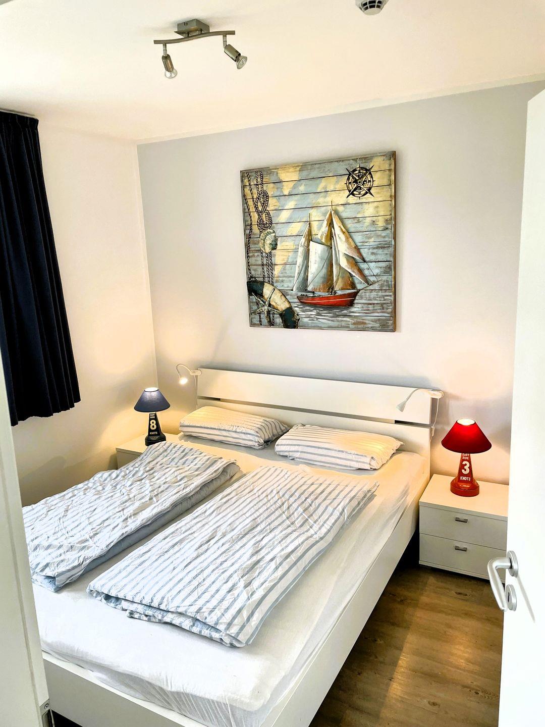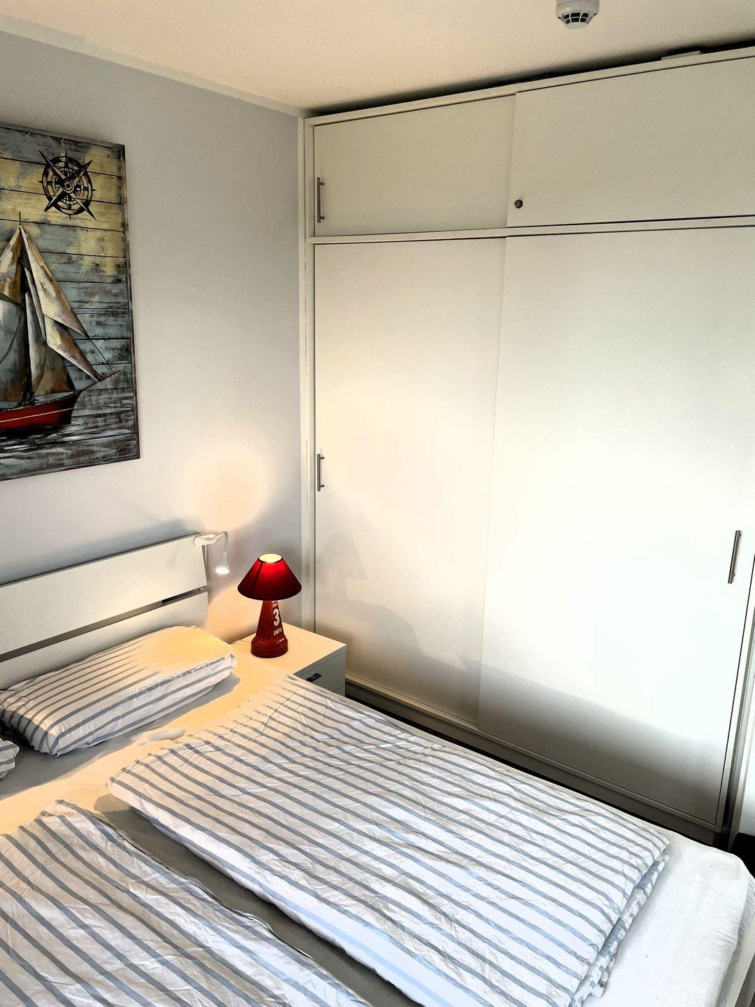 Im hellen großzügigen Wohnbereich lädt Sie eine gemütliche Couchgarnitur mit einem Sessel und einem Flat-TV (Netflix und Amazon Prime mit eigenem Zugang möglich) sowie einem Festplattenrecorder zum Relaxen ein. Von der vollverglasten Essecke haben Sie einen seitlichen Meerblick. WLAN steht Ihnen kostenfrei zur Verfügung. Auf dem Balkon können Sie nach einem erlebnisreichen Tag am Meer die wärmende Abendsonne bis zum Sonnenuntergang genießen. In den kühleren Monaten sorgt ein knisternder Kaminofen und eine Fußbodenheizung für Ihr Wohlfühlklima. Die im großen Wohnbereich integrierte Küche ist mit Kühl/-Gefrierschrank, Geschirrspüler, Ceranfeld, Wasserkocher, Toaster und Kaffeemaschine umfassend ausgestattet. In dem hochwertig eingerichteten Bad befindet sich eine Regenwalddusche, eine Waschmaschine sowie ein großer Waschtisch mit Spiegel, WC und ein Fön. Die Wohnung verfügt über zwei separate Schlafzimmer: Eines mit Doppelbett (160*200) mit seitlichem Meerblick und großem Einbauschrank, das Zweite mit Etagenbett und kleinem Einbauschrank. In beiden Schlafräumen besteht die Möglichkeit der Verdunklung.