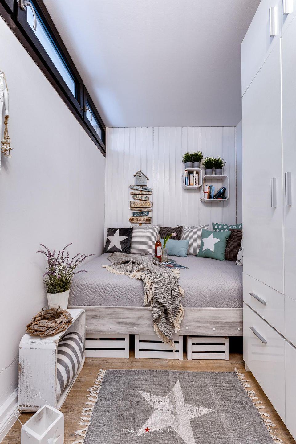 In der dritten und obersten Etage des Hauses werden Sie im freundlichen Flur mit Garderobe und Schuhschrank empfangen. Von hier gelangen Sie in das kuschelige Schlafzimmer (vecoelasische Matratzenmaß 140*200 cm) mit Oberlicht und viel Platz für Ihren Kofferinhalt im Kleiderschrank.