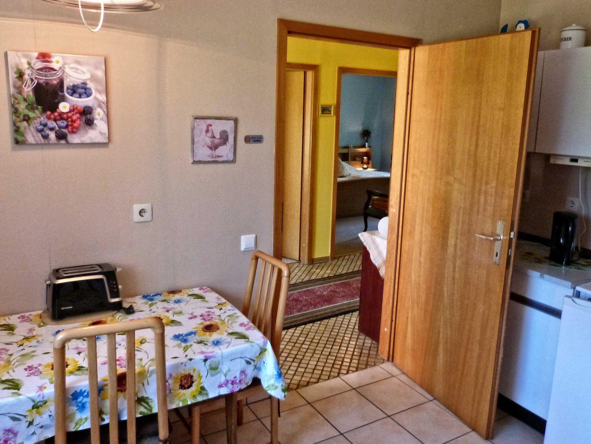 Die behindertenfreundliche Ferienwohnung 2 befindet sich im Erdgeschoss, sie verfügt über zwei Schlafzimmer (1x mit Doppelbett, 1 x mit zwei Einzelbetten), Wohnzimmer mit Sitz- und Essbereich. Die Küche ist mit Geschirrspüler und Mikrowelle ausgestattet. Es gibt ein Duschbad sowie ein Gäste-WC. Von der möblierten Terrasse haben Sie einen schönen Blick in die unverbaute Natur.