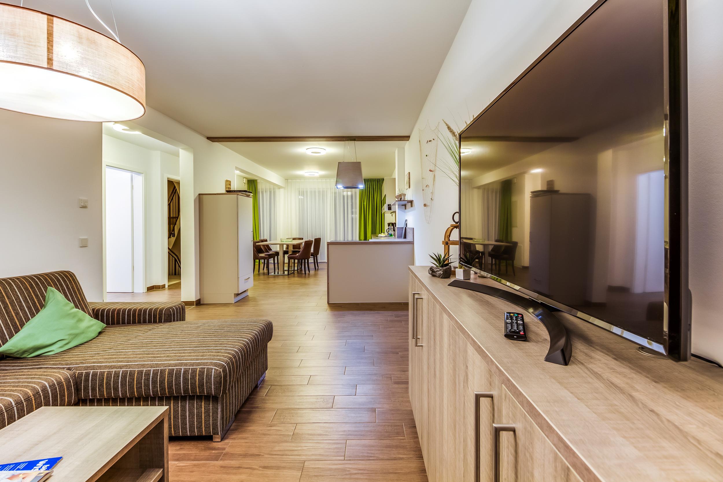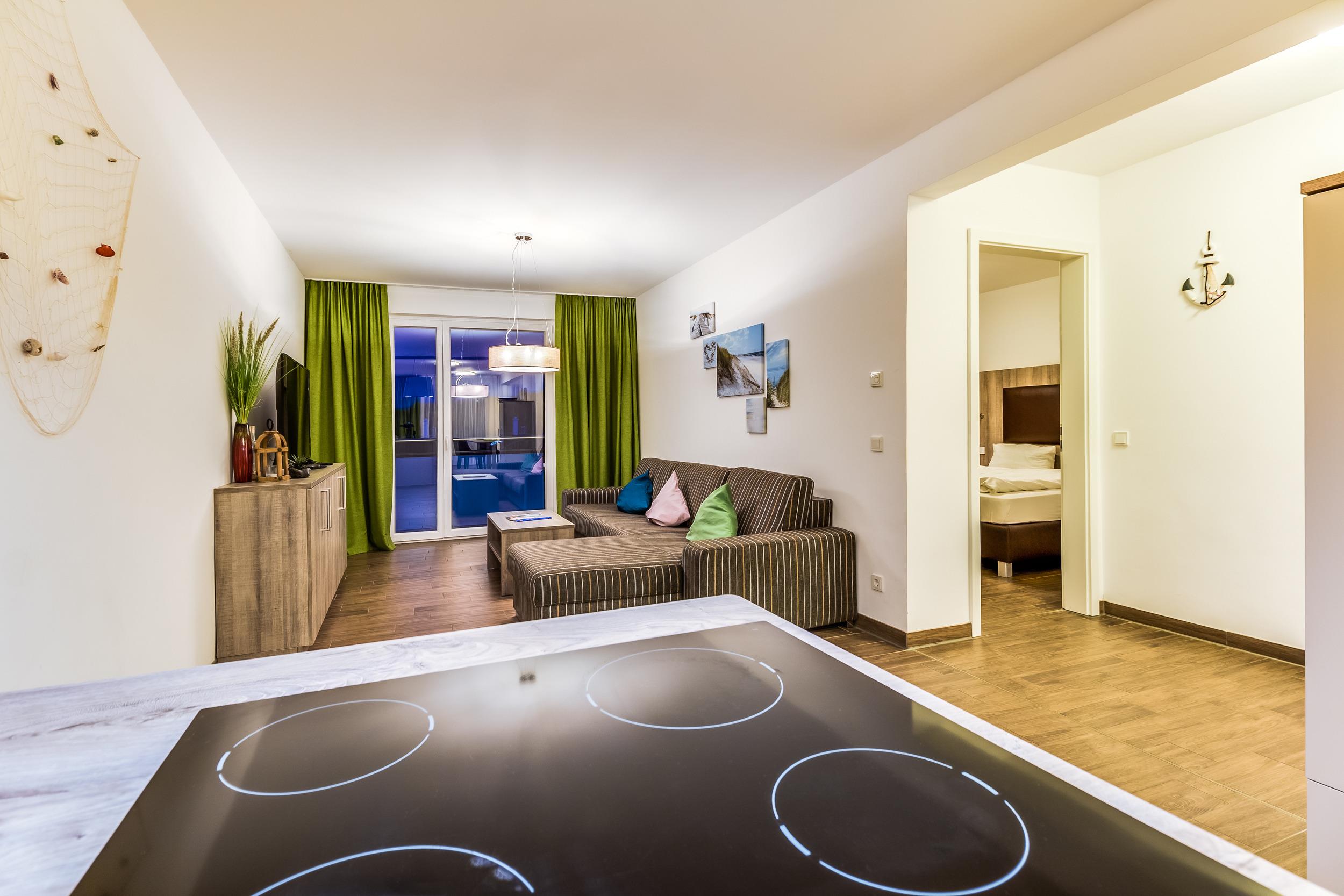 Die 6 Ferien-Appartements "Kapitänskajüte" und die 24 Ferien- & Familien-Appartements "Seglerhütte", "Ankerplatz", "Piratennest" & "Leuchtturm" sind großzügig und modern gestaltet.