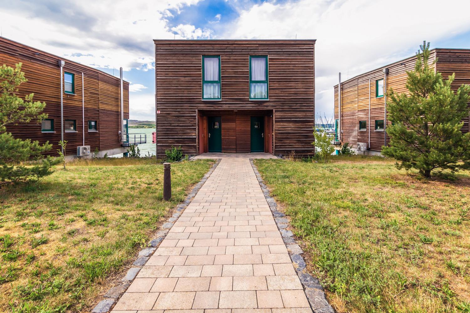 Die komfortablen 14 Hafenhäuser und 23 Dünenhäuser Comfort mit offenem Wohn-/Essbereich, Seeterrasse und Sauna zeichnen sich durch den individuellen architektonischen Charme aus.