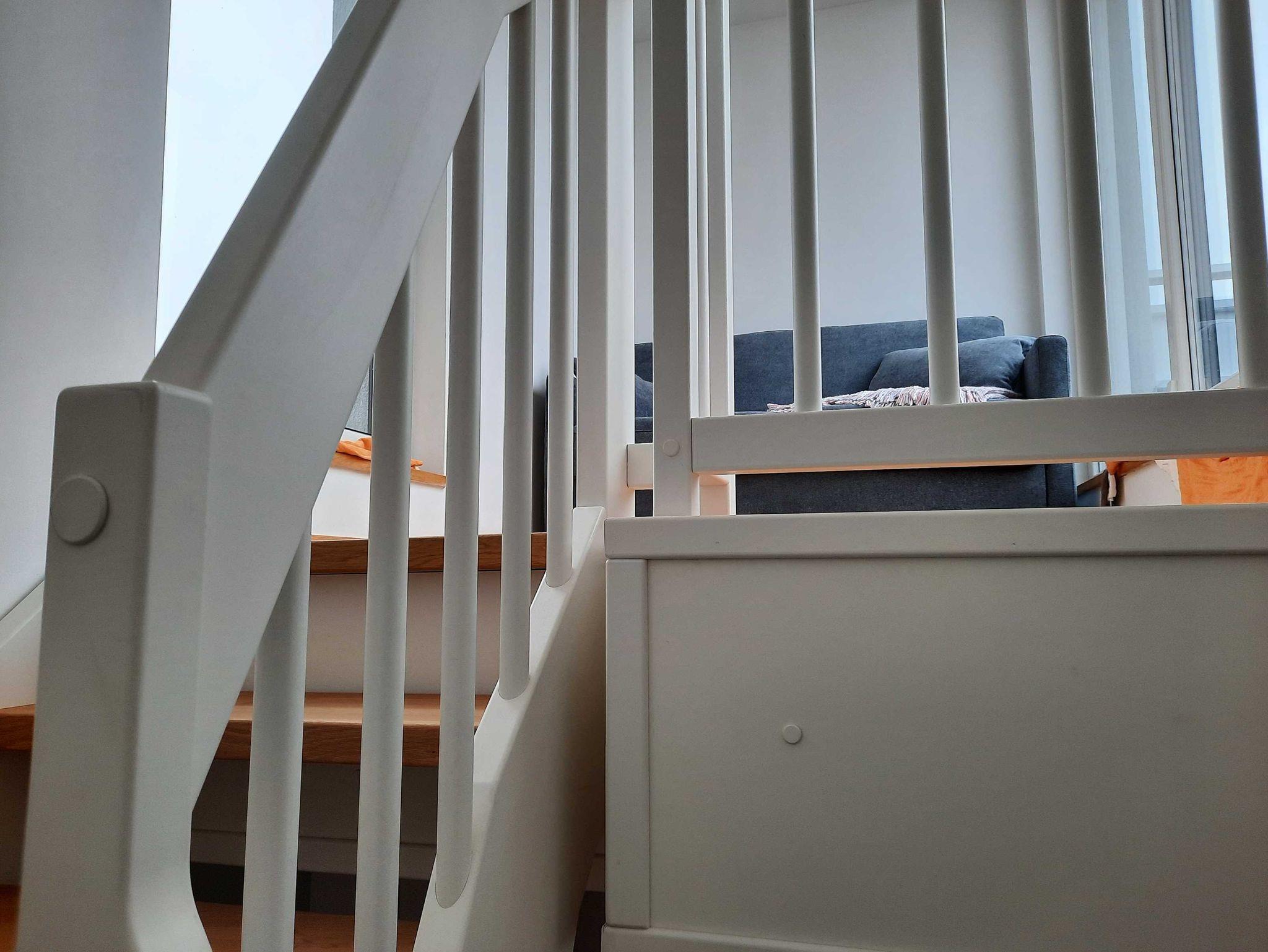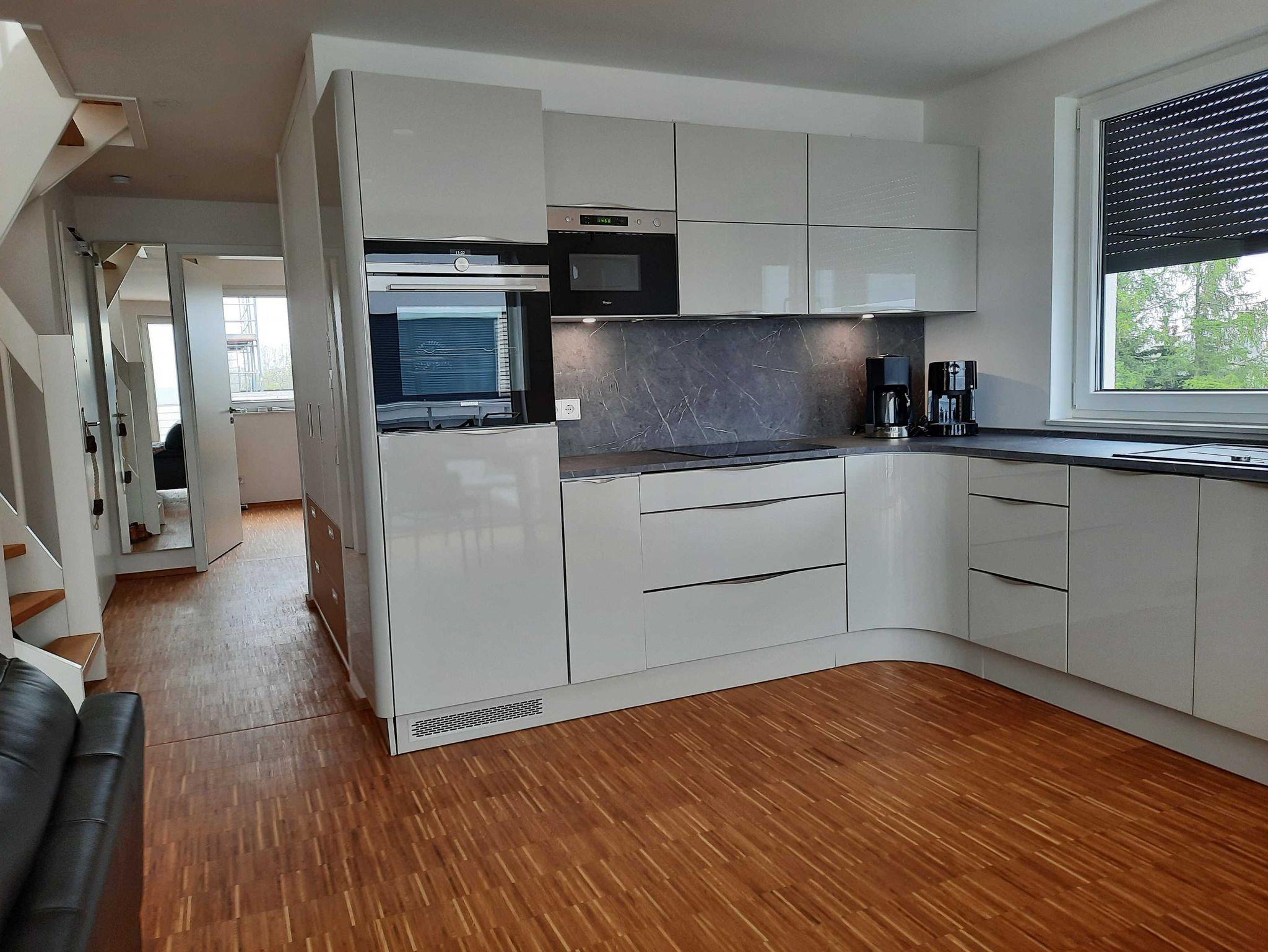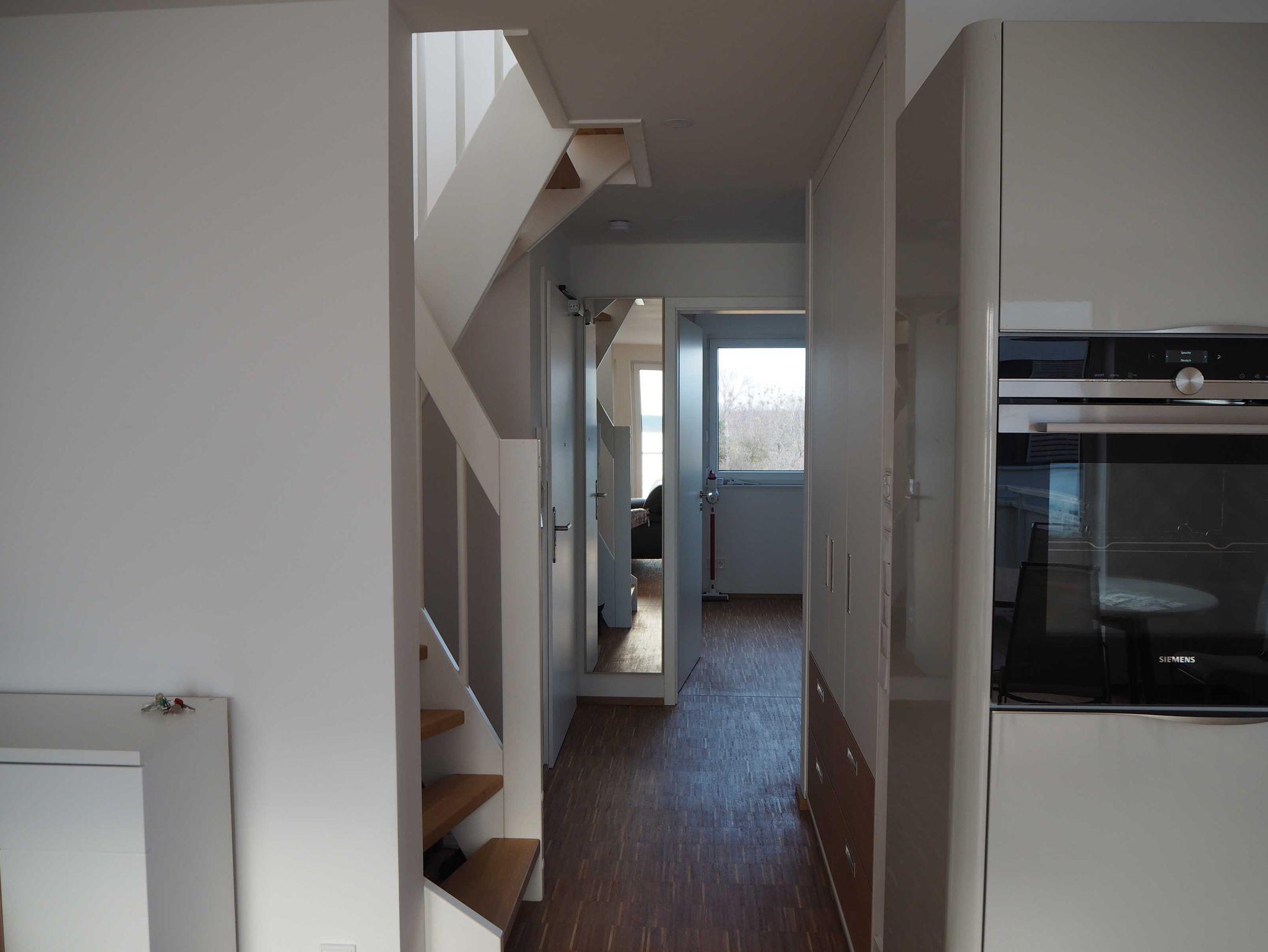Die neugebaute Ferienwohnung liegt im 2. OG eines Wohnhauses mit Hafenblick. Die Wohnung selbst hat eine Fläche von 65 qm mit einem voll ausgestatteten Wohnbereich inklusive Sat- TV und Soundanlage, Essecke und angrenzendem Balkon. Des weiteren gibt es ein Schlafzimmer mit Doppelbett und Wandschrank ? TV sowie ein modern, gestaltetes Bad mit Wanne und Dusche. Über die Treppe im Flur gelangen Sie in die offene Galerie, von der aus 2 Dachterrassen, als Outdoorbereiche mit Loungemöbeln auf den Gast warten. In der offenen Galerie steht ein Schlafsofa (Liegefläche 2m x 1,30m). Alle Räume verfügen über Fußbodenheizung und Parkett bzw. Fliesen. Die moderne, voll ausgestattete Küche mit Induktionskochfeld, Backofen, Geschirrspüler, Mikrowelle und Kaffeemaschine, lässt keine Wünsche offen. Ein Stellplatz am Haus steht Ihnen zur Verfügung.
