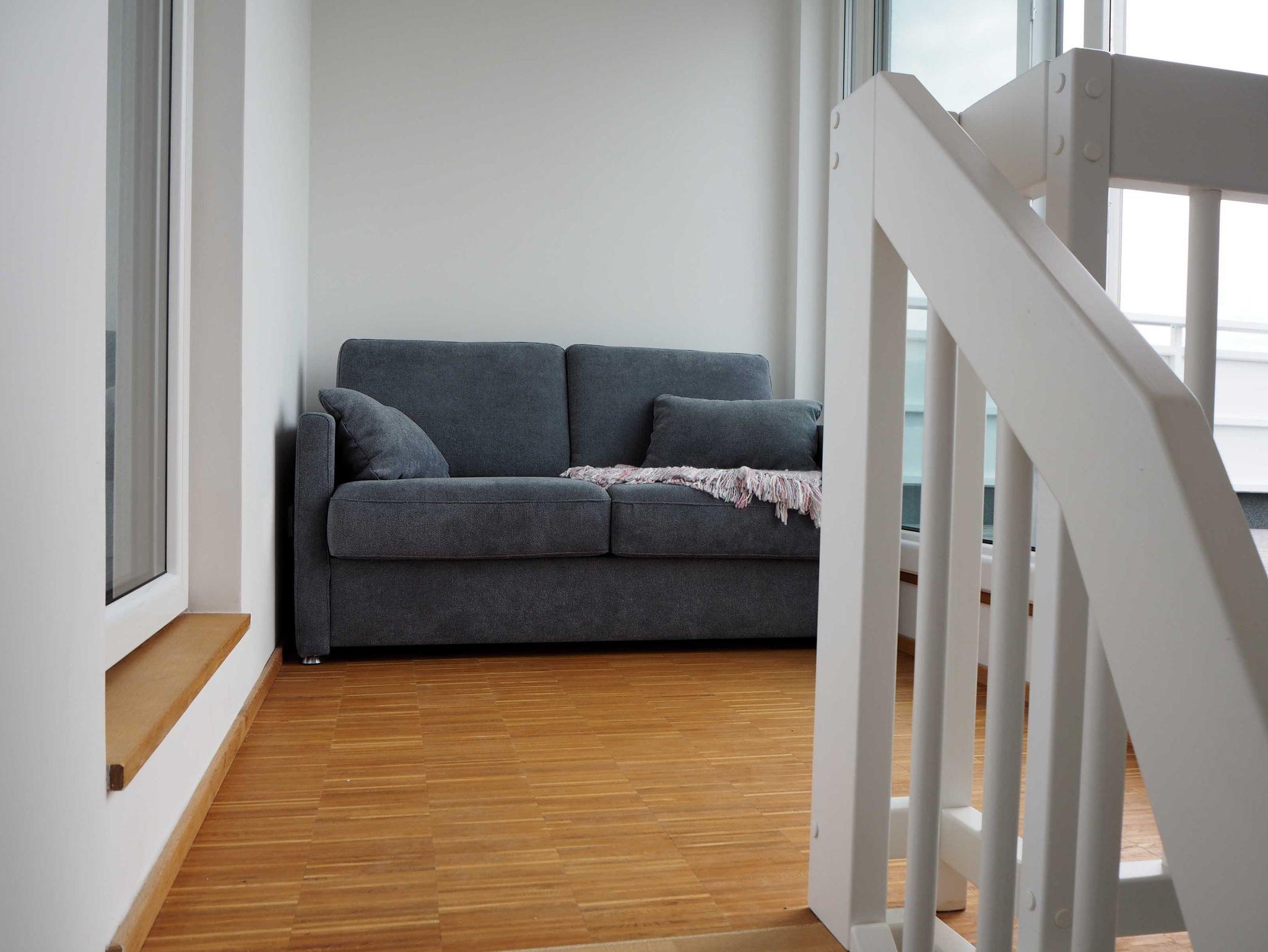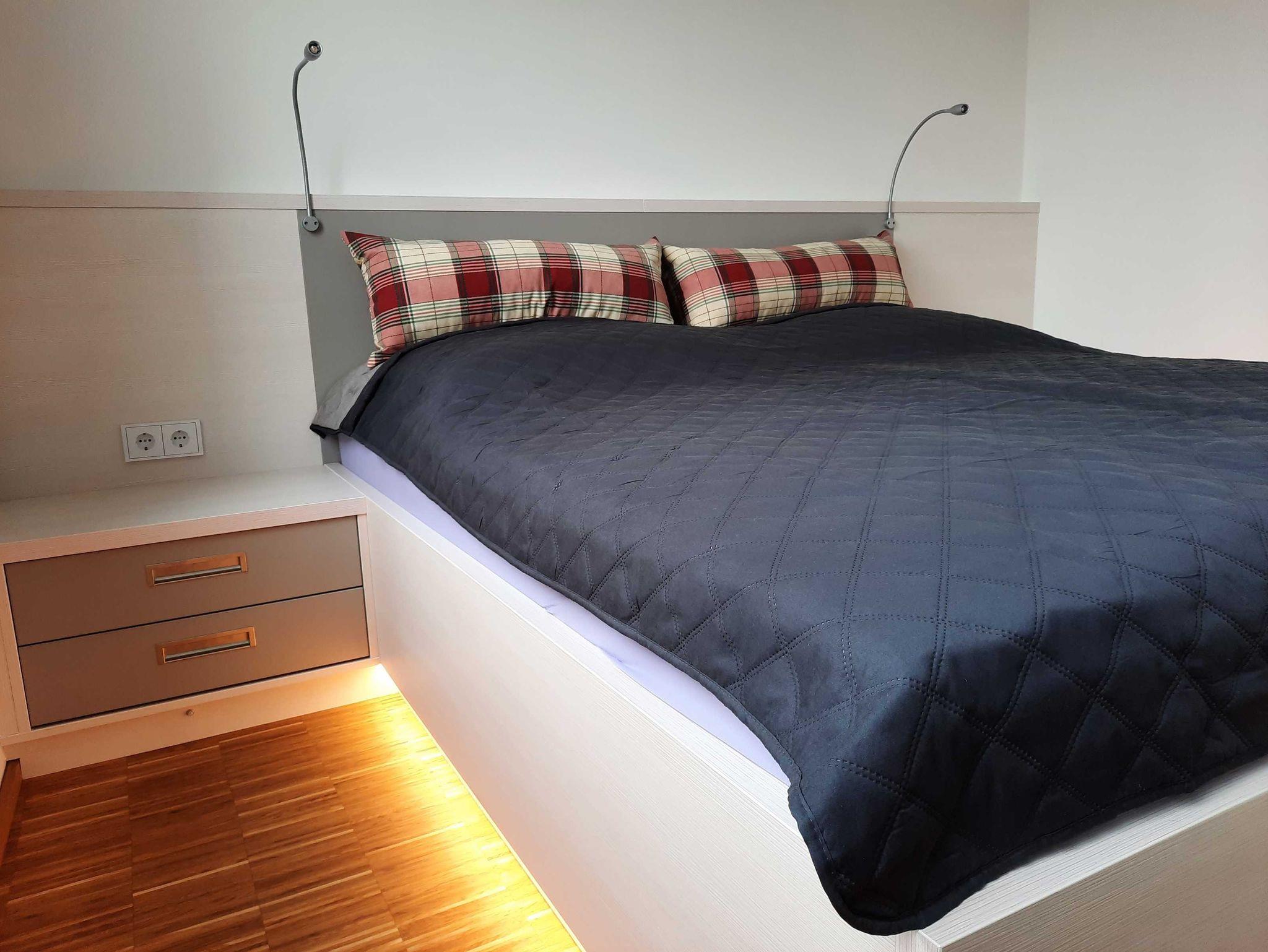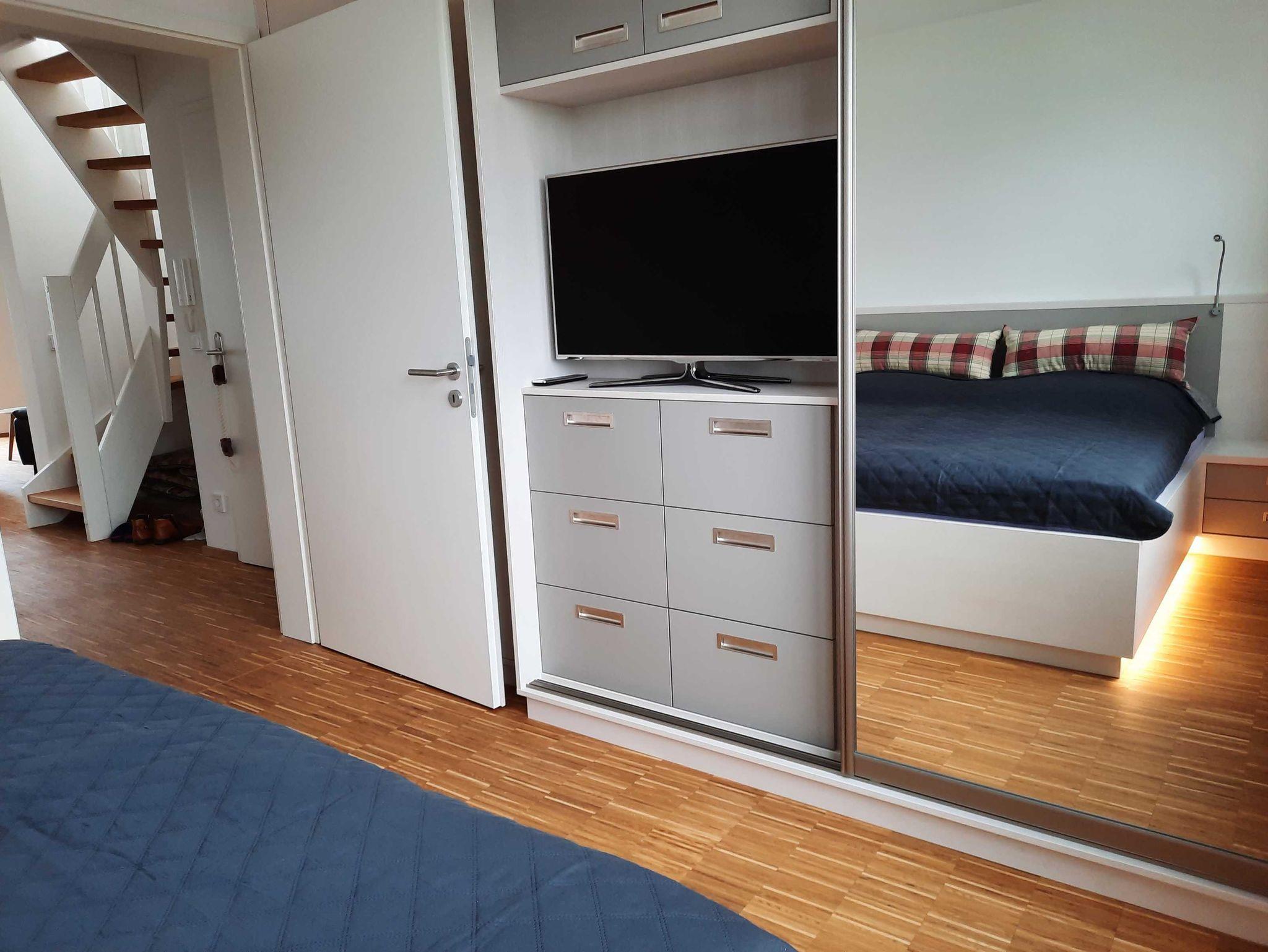 Die neugebaute Ferienwohnung liegt im 2. OG eines Wohnhauses mit Hafenblick. Die Wohnung selbst hat eine Fläche von 65 qm mit einem voll ausgestatteten Wohnbereich inklusive Sat- TV und Soundanlage, Essecke und angrenzendem Balkon. Des weiteren gibt es ein Schlafzimmer mit Doppelbett und Wandschrank ? TV sowie ein modern, gestaltetes Bad mit Wanne und Dusche. Über die Treppe im Flur gelangen Sie in die offene Galerie, von der aus 2 Dachterrassen, als Outdoorbereiche mit Loungemöbeln auf den Gast warten. In der offenen Galerie steht ein Schlafsofa (Liegefläche 2m x 1,30m). Alle Räume verfügen über Fußbodenheizung und Parkett bzw. Fliesen. Die moderne, voll ausgestattete Küche mit Induktionskochfeld, Backofen, Geschirrspüler, Mikrowelle und Kaffeemaschine, lässt keine Wünsche offen. Ein Stellplatz am Haus steht Ihnen zur Verfügung.