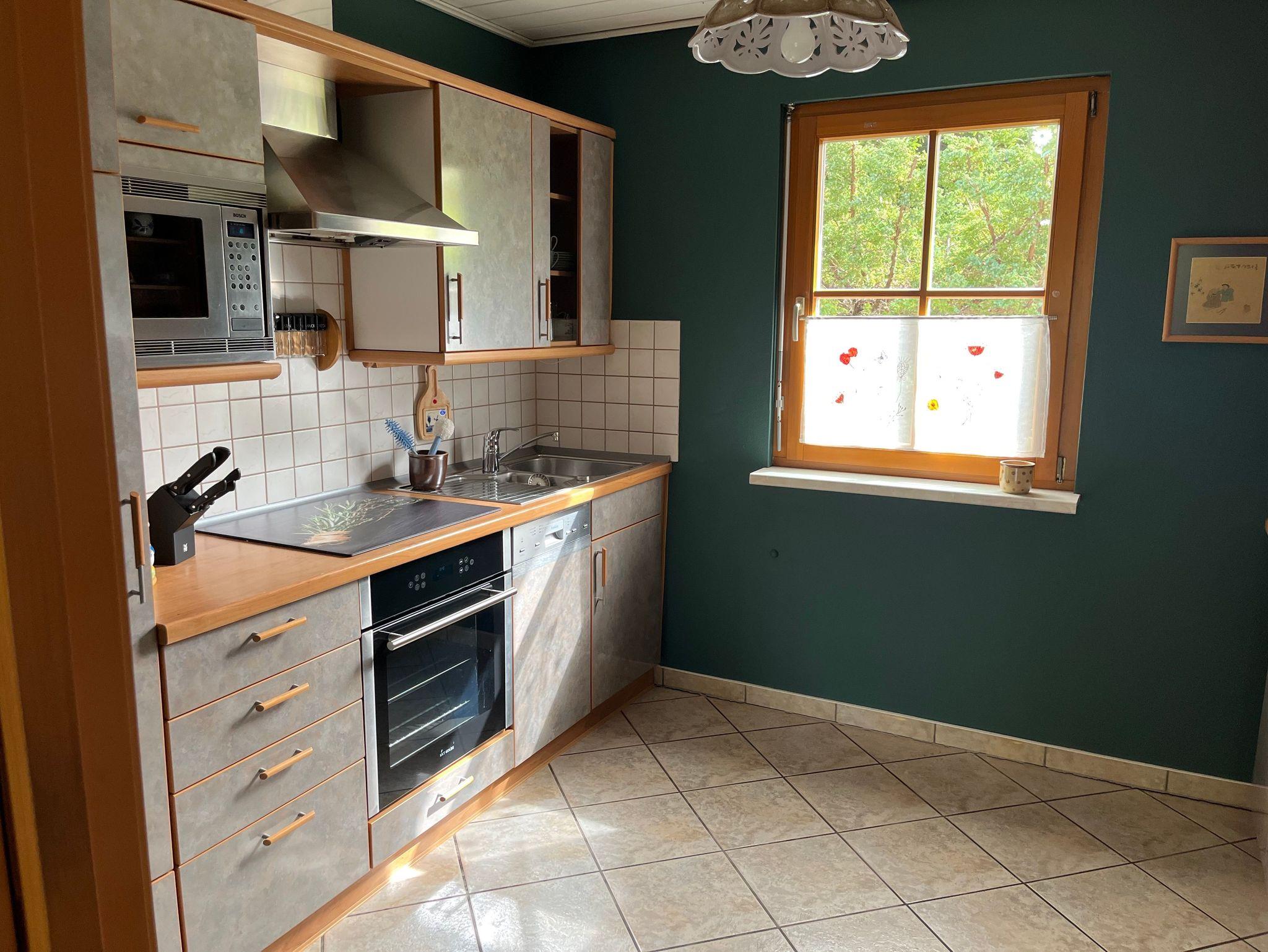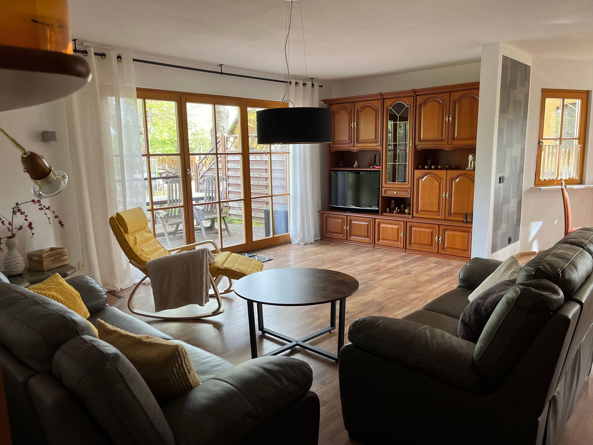 Die Ferienwohnung ist 75m² und bietet Platz für 4 Personen. Sie verfügt über ein Wohnzimmer mit TV, einem Essbereich, 2 Schlafzimmern, Küche und einem Bad mit DU, Badewanne und WC. Vom Wohnzimmer gelangt man auf die Terrasse und in den Garten. Eine Grillmöglichkeit ist im Garten vorhanden. Für die Ferienwohnung steht ein Parkplatz auf dem Grundstück zur Verfügung.