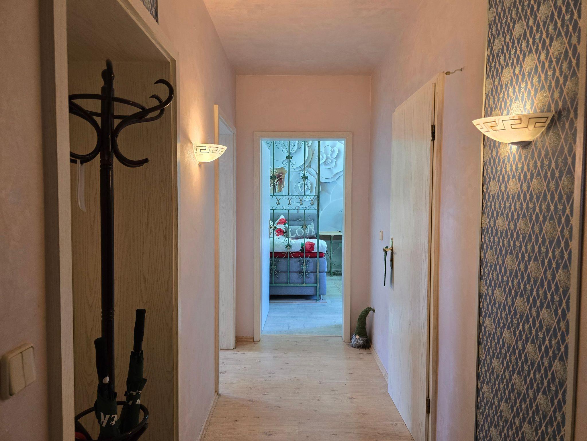 Ein modernes Bad und ein Flur runden das Apartment ab. Eine gemütliche Terrasse auf der 1. Ebene steht unseren Gästen für ein Verweilen im Freien zur Verfügung. Alle Räume im Haus sind Nichtraucherzimmer.