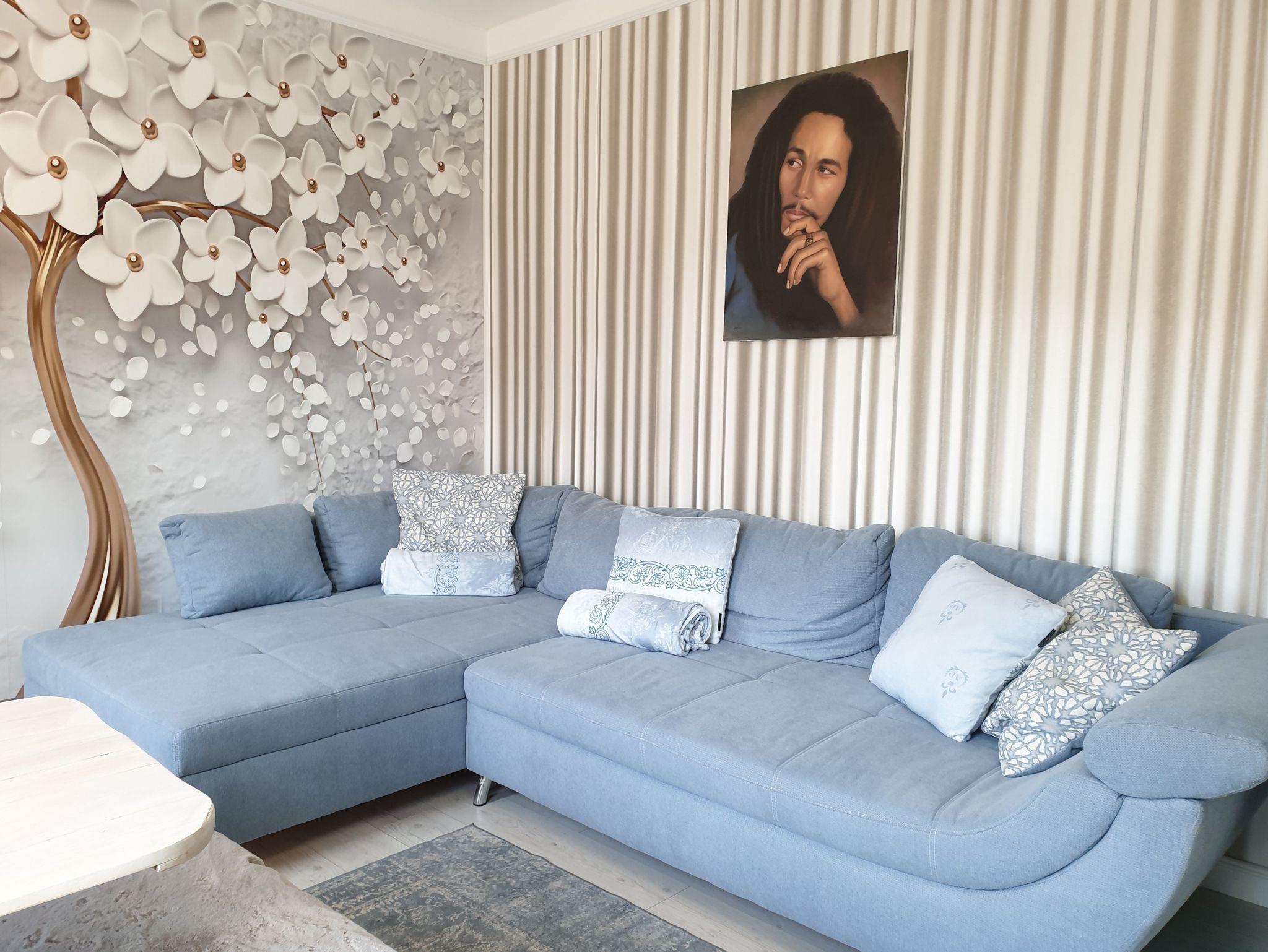 Im Apartment steht ein Schlafzimmer mit 2 getrennt stehenden Boxspringbetten zur Verfügung. Der Wohnraum ist mit einer komplett ausgestatteten Küche und einer Wohnlandschaft ausgestattet. Die großzügige Sofaecke bietet die Möglichkeit der Aufbettung für 2 Schlafgelegenheiten.