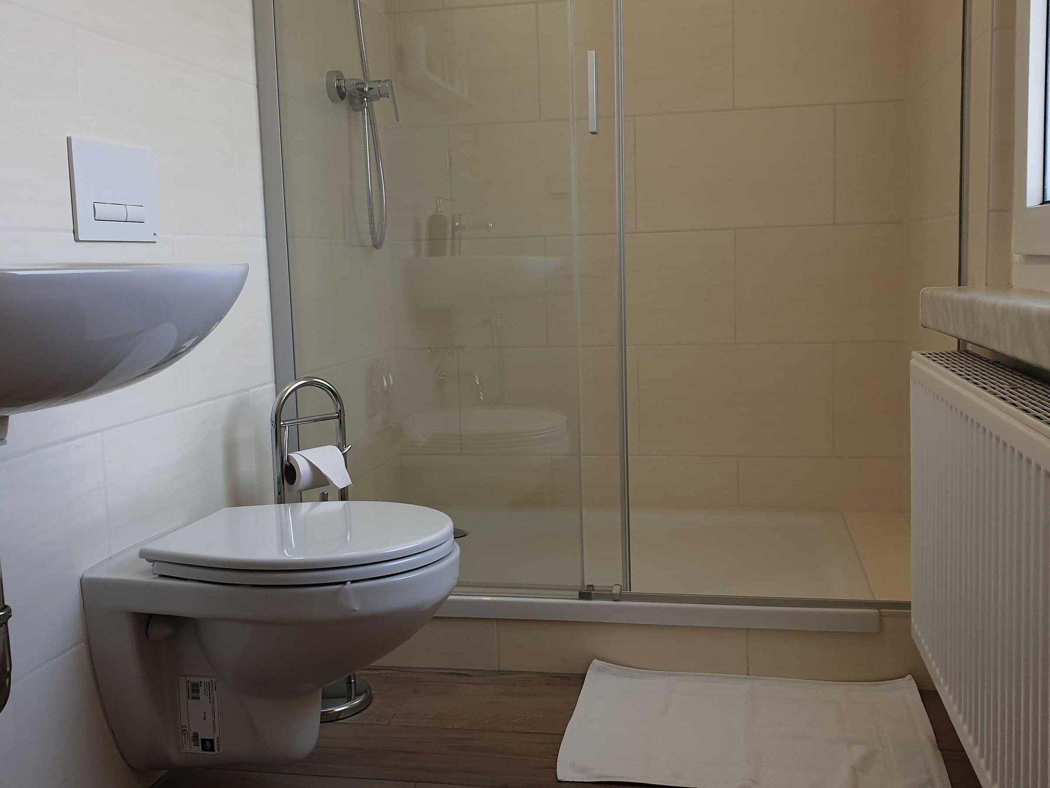 Alle Zimmer sind mit Dusche und WC ausgestattet.