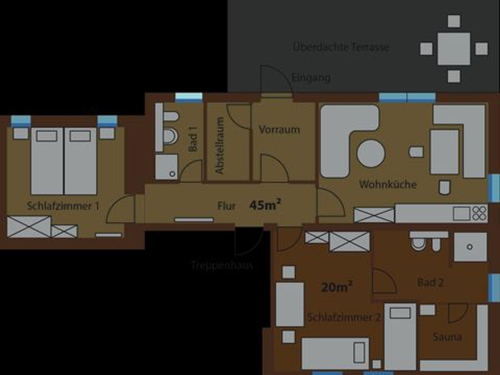• der Preis bei Buchung von 2 Personen ist exkl. Schlafzimmer 2 und Badezimmer 2, nach Absprache und gegen Aufpreis kann die gesamte Ferienwohnung reserviert werden