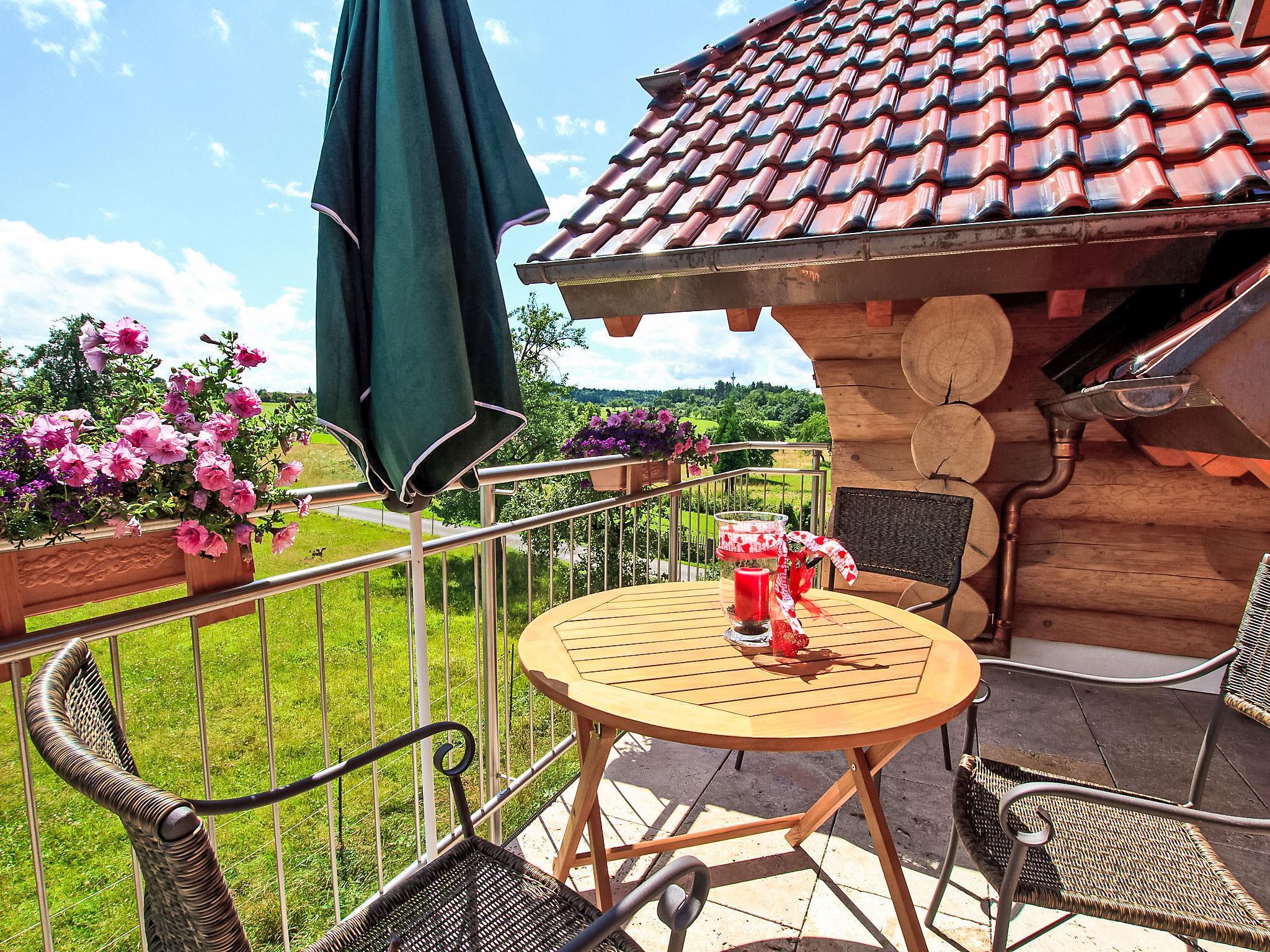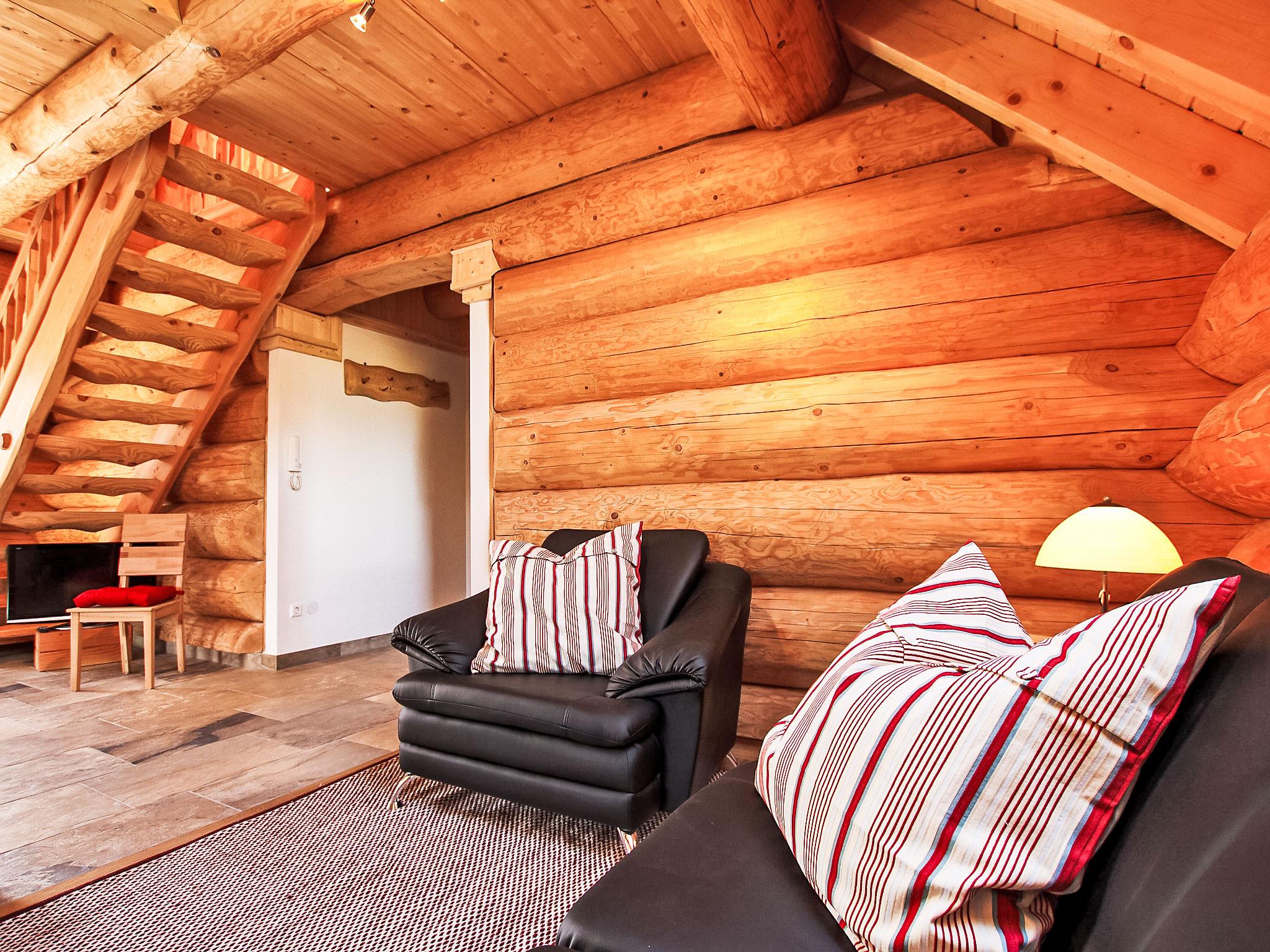 "Fichte", 3-room apartment 60 m2 on 2 levels on 2nd floor. Stylish and wooden furniture furnishings: living/dining room with Scandinavian wood stove and satellite TV (flat screen). Exit to the balcony. 1 room with 1 bed (90 cm, length 200 cm). Open kitchen (oven, dishwasher, 4 ceramic glass hob hotplates, electric coffee machine). Shower/WC. Top floor: 1 double bedroom with sloping ceilings. Heating. Large balcony. Balcony furniture. Beautiful view of the countryside. Facilities: baby cot (extra), logs (free). Internet (WiFi, free). Please note: non-smokers only. Smoke alarm.