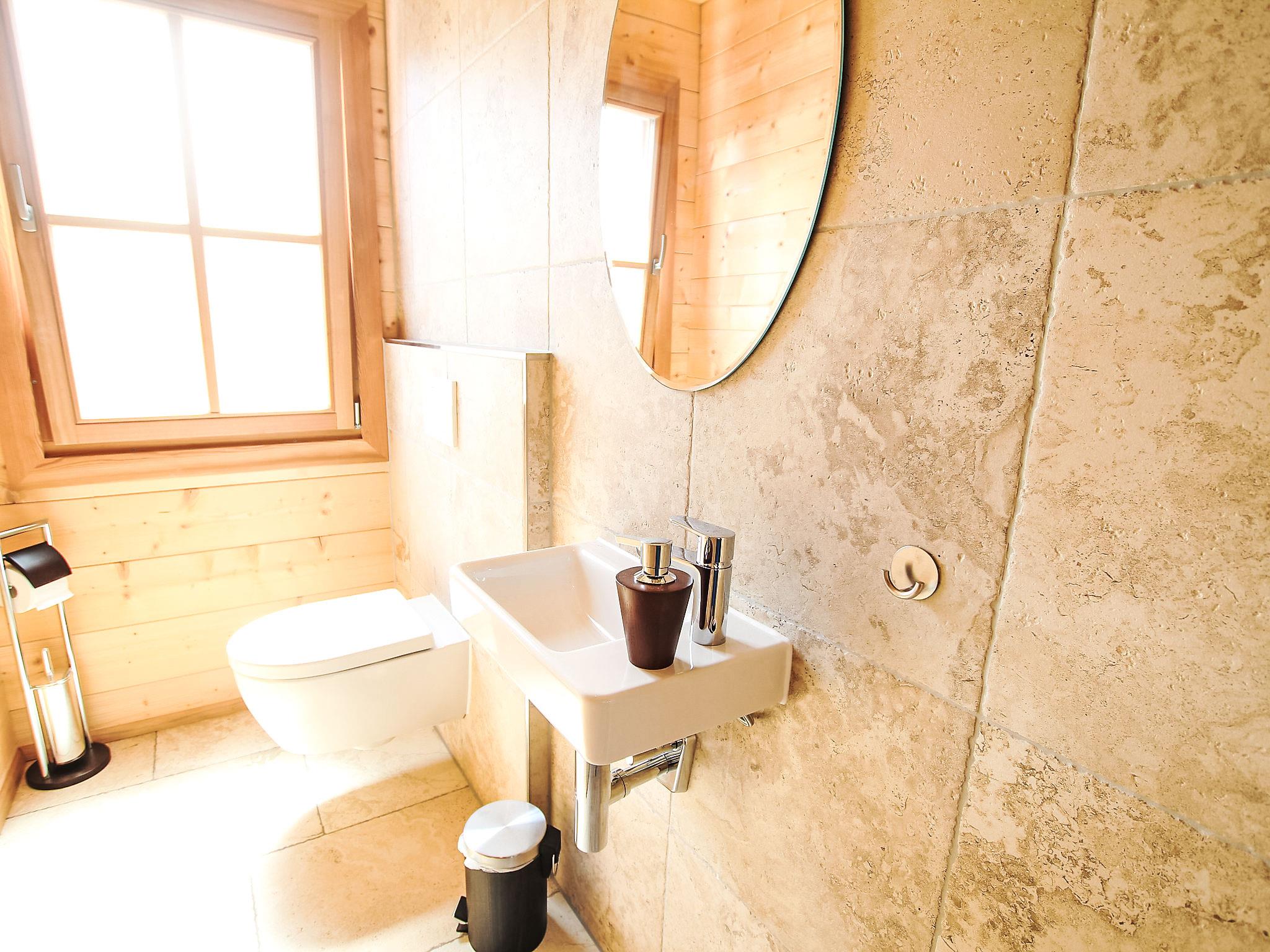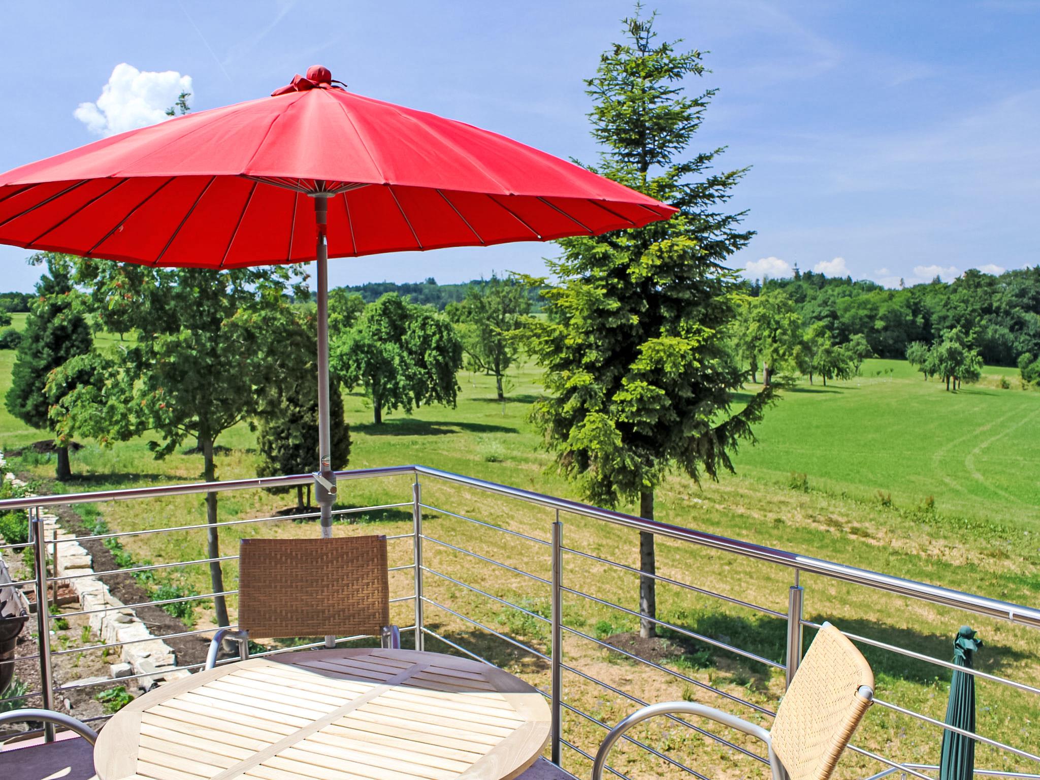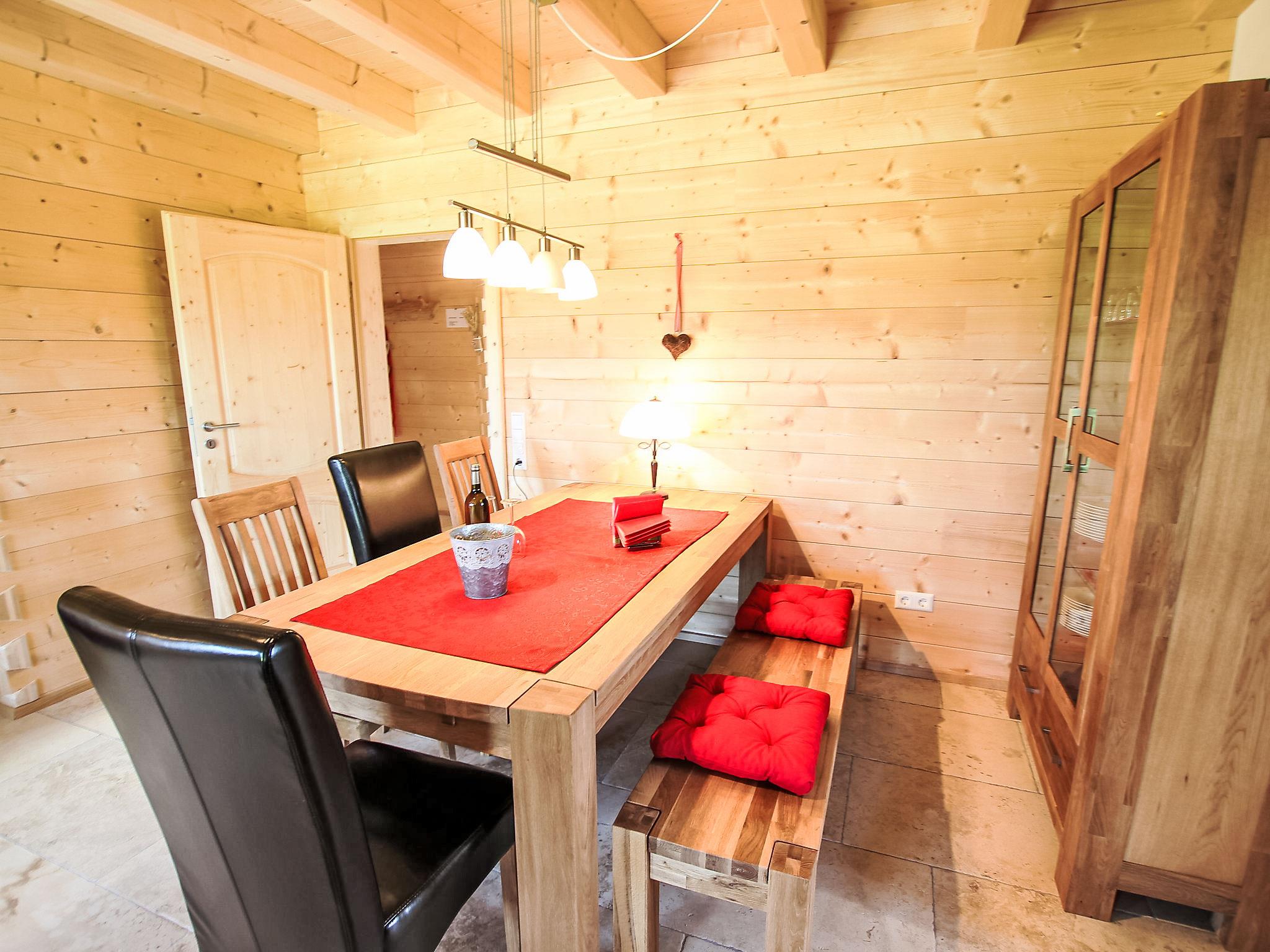 "Lärche", 5-room maisonette 150 m2 on 2 levels on 2nd floor. Stylish and wooden furniture furnishings: living/dining room with Scandinavian wood stove and satellite TV (flat screen). Exit to the balcony. 1 double bedroom. 1 room with 1 bed. Kitchen (oven, dishwasher, 4 ceramic glass hob hotplates, electric coffee machine). Sep. WC, bath/shower/WC. Top floor: 2 double bedrooms with sloping ceilings. Shower/WC. Heating. Balcony furniture. Very beautiful view of the countryside. Facilities: logs (free). Internet (WiFi, free). Please note: non-smokers only. Smoke alarm.
