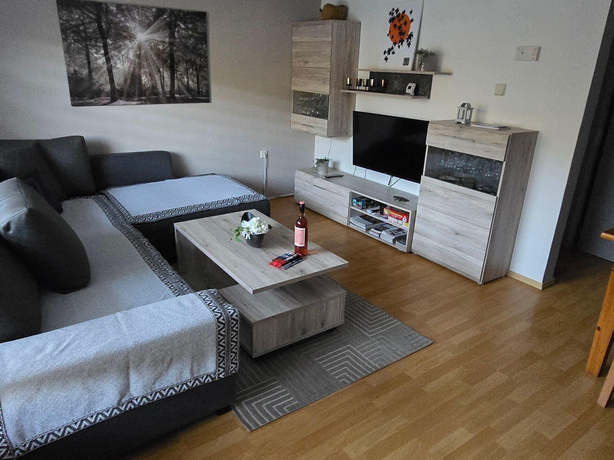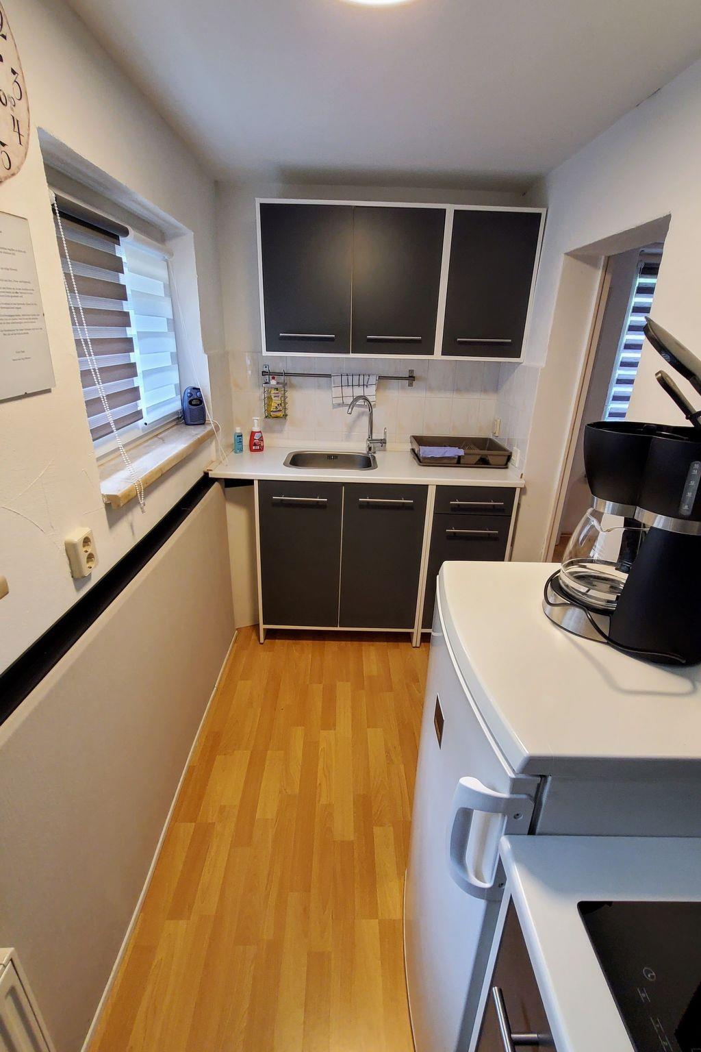 The approx. 50 m² bungalow has a living/dining room with a cosy sofa corner with sleeping function for two people, a coffee table, a 42-inch LCD satellite TV / streaming TV (WiFi and streaming providers such as Netflix and Prime Video included in the price), as well as a large window with a direct view of the Pressnitz Valley and a dining table with space for up to four people. The small kitchen is equipped with a mini oven, ceramic hob, fridge with freezer compartment, dishwasher, microwave, toaster, kettle and filter coffee machine and leaves nothing to be desired. In the bedroom there are two single beds (0.90 m wide), which can also be put together to form a double bed on request. The modern bathroom is equipped with a shower, toilet, washbasin, hairdryer and illuminated mirror. Bed linen and towels are provided on request for a small extra charge. Heating is available in all rooms. Internet / Wla included in the price.