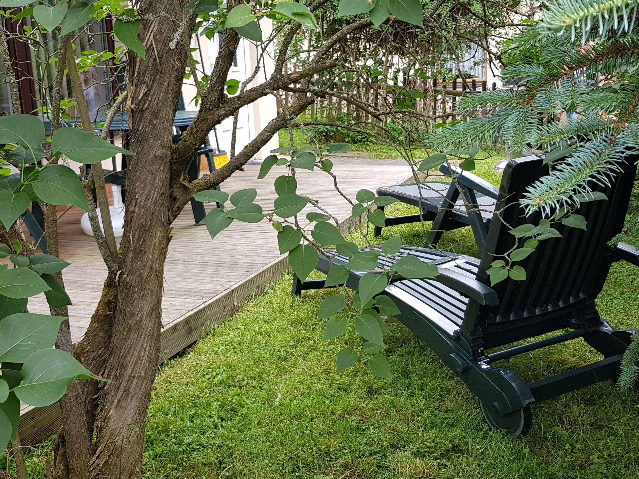 The 600 m² property is located directly on the edge of the forest and is completely fenced. The sheltered terrace is equipped with garden furniture, sun protection and two loungers. There is also a barbecue for a cosy barbecue evening. There are two free car parking spaces in front of the house. A maximum of two pets are allowed for a fee.
