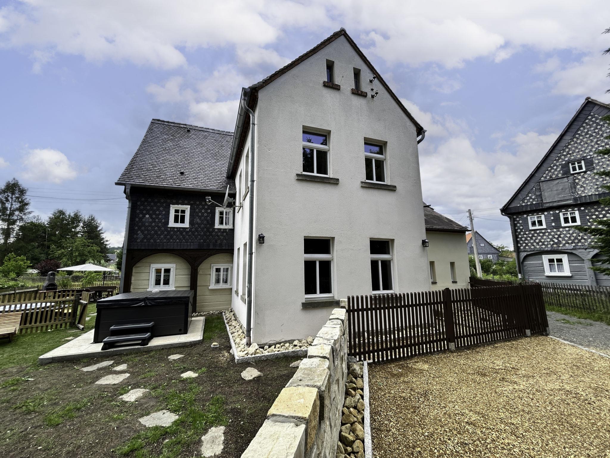 Historical 2-family house, 2 storeys, built in 1790, renovated in 2022. 500 m from the centre of Großschönau, 12 km from the centre of Zittau, 30 km from the centre of Löbau, 20 m from the river. For shared use: natural state property (fenced). Private: hot tub. Bread roll service. Shop 500 m, supermarket 200 m, restaurant 400 m, bakery 300 m, bus stop "Großschönau Weinhaus" 700 m, railway station "Großschönau Bahnhof" 1.5 km, outdoor swimming pool 1.5 km, bathing lake "Olbersdorfer See" 13 km. Walking paths from the house 5 m, ski lift 4 km, ski school 4 km, cross country ski track 4 km. Well-known ski regions can easily be reached: Waltersdorf 4 km. Well-known lakes can easily be reached: Olbersdorfer See 13 km. Please note: Additional accommodations can be booked.