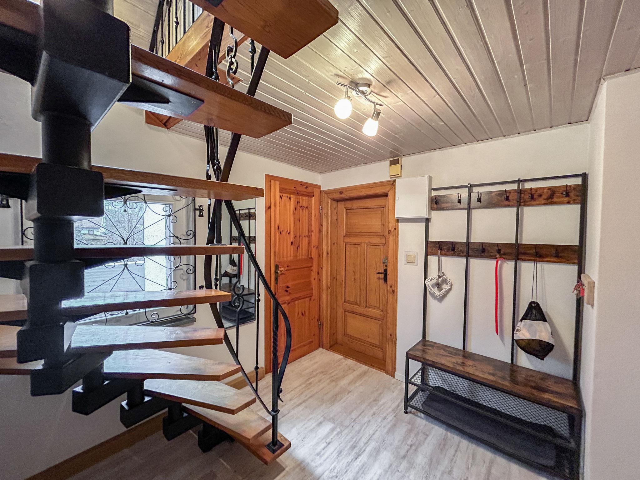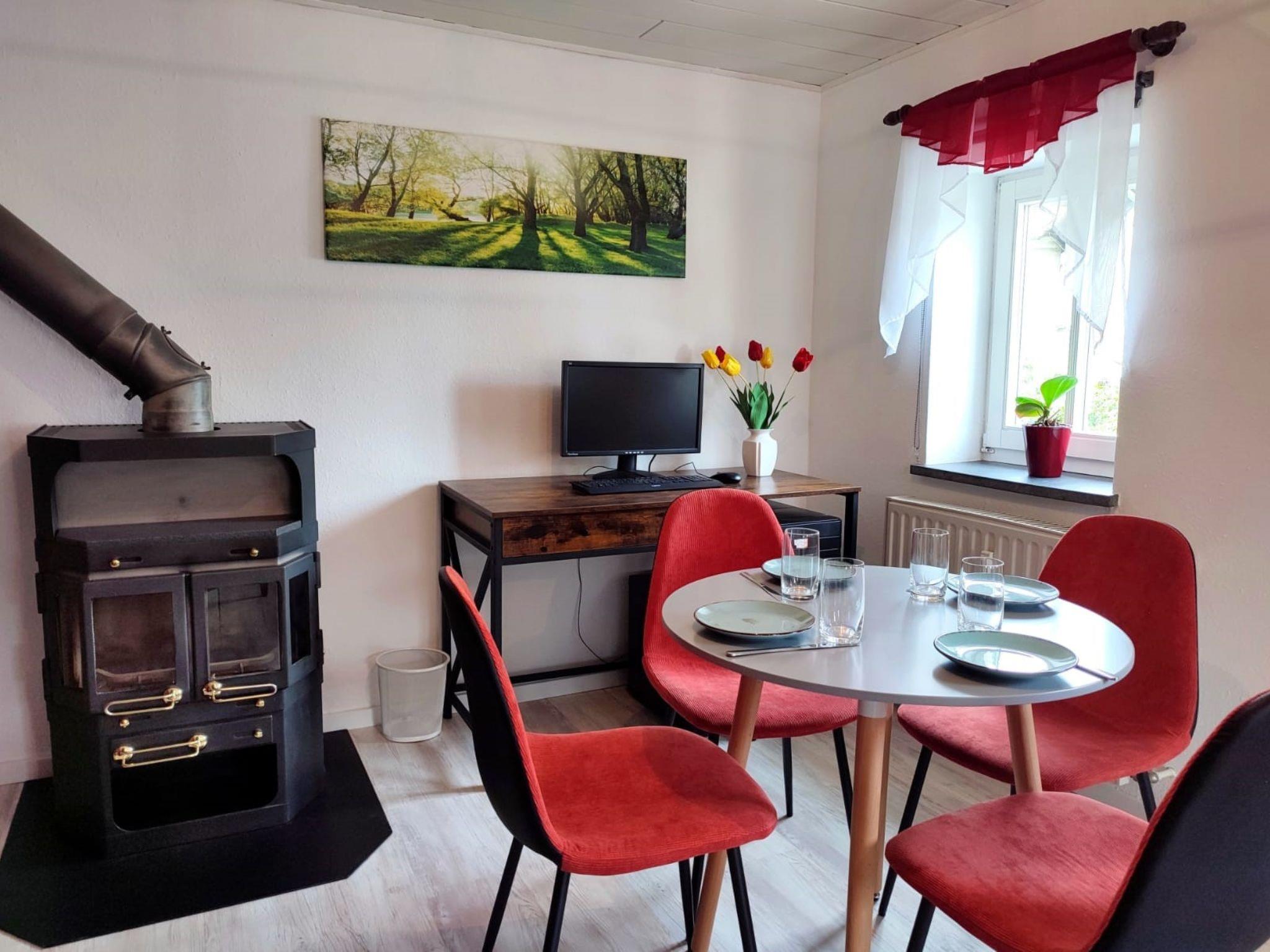 "Fritz", 3-room maisonette 70 m2 on 2 levels on 1st floor. Cosy and wooden furniture furnishings: upper floor: (steep stair) living/dining room with 1 sofabed, Scandinavian wood stove, dining table and cable TV (flat screen). Kitchen (oven, dishwasher, 4 ceramic glass hob hotplates, toaster, kettle, electric coffee machine) with dining nook and cable TV (flat screen). Bath/WC, double hand-basin. Top floor: (steep stair) with sloping ceilings, 1 open room with 1 french bed (140 cm, length 200 cm), 1 double bed (180 cm, length 200 cm), cable TV (flat screen). 1 room with 1 bed (80 cm, length 190 cm). Hydro massage bath. Gas heating. Patio. Facilities: washing machine, sauna. Internet (WiFi, free). Parking (1 car). Please note: non-smokers only. Maximum 1 pet/ dog allowed. Smoke alarm. The sauna (infrared sauna) is on the ground floor. The hot tub is an outdoor bubble bath.