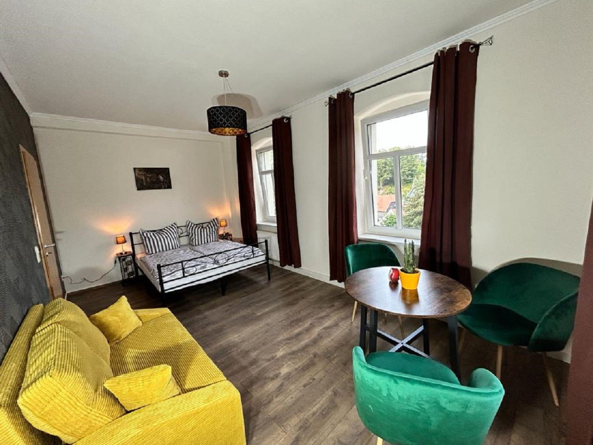 "Pumphut", 2-room apartment 32 m2 on 1st floor. Object suitable for 2 adults + 1 child. Beautiful and tasteful furnishings: living/sleeping room with 1 sofabed and 1 double bed (160 cm, length 200 cm), satellite TV (flat screen). Kitchen (oven, 4 ceramic glass hob hotplates, kettle, microwave, electric coffee machine). Bath/WC. Heating. Beautiful view of the town. Facilities: sauna, iron, hair dryer. Parking (1 car) at the house. Please note: non-smokers only. Maximum 2 pets/ dogs allowed.