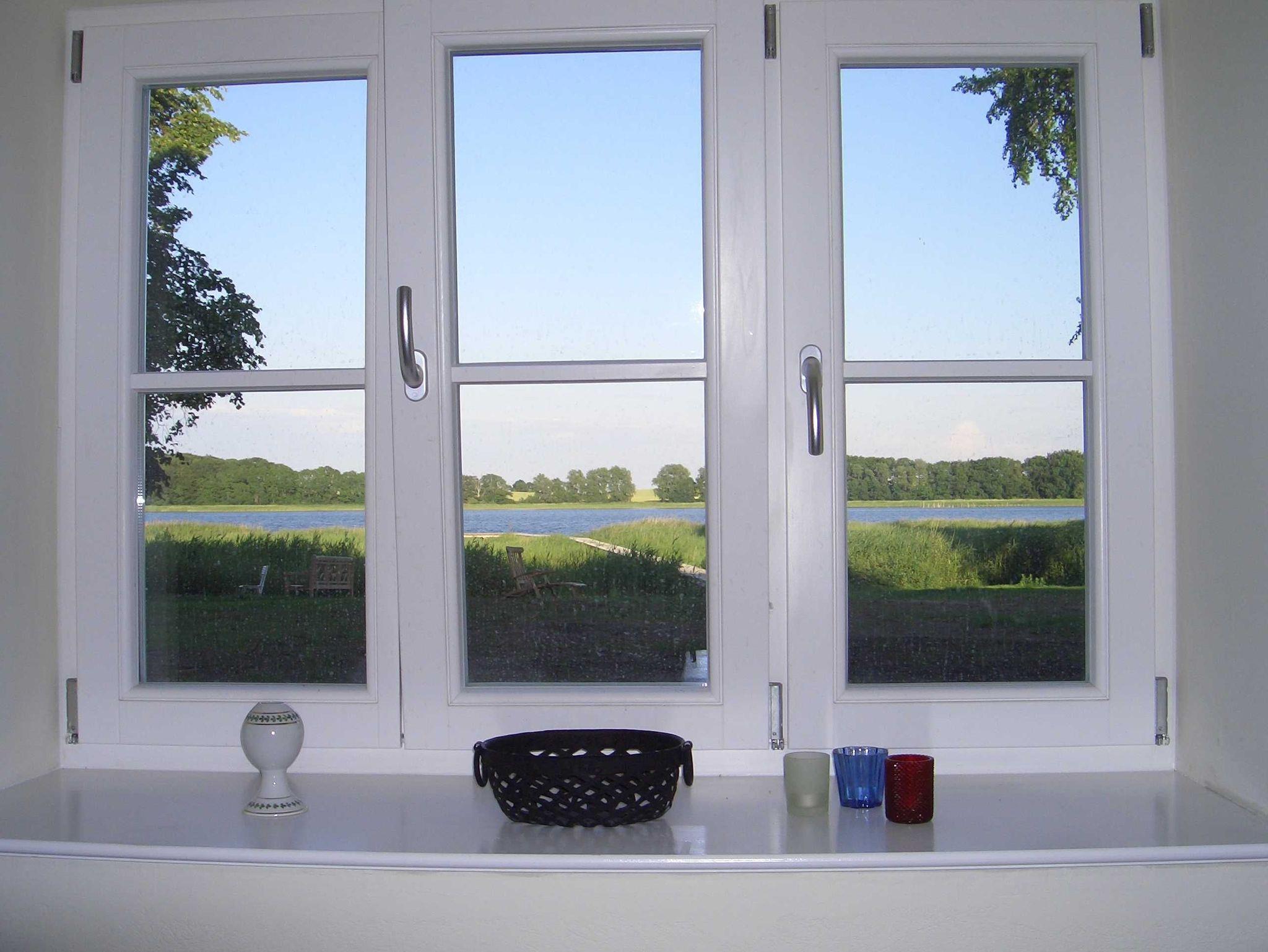 Vom Wohnzimmer hat man einen sehr schönen Blick auf das Wasser und den Badesteg.