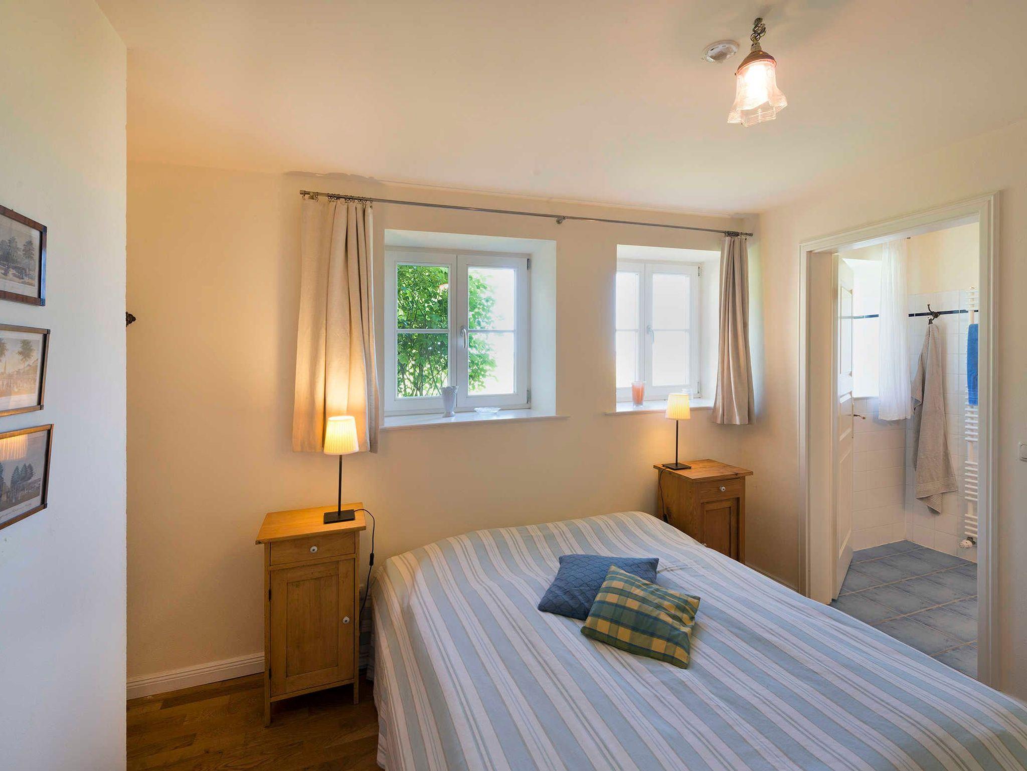 Die Ferienwohnung Nr. 1 befindet sich im Parterre des schönen Gutshauses. Die Wohnung für bis zu zwei Personen und in einer Größe von 50 m² ist mit Liebe zum Detail eingerichtet und besteht aus zwei Zimmern: Ein großes Wohnzimmer mit offener Küche (hochwertige Siemens-Geräte), ein großzügiges Schlafzimmer mit einem Doppelbett, einem großen Badezimmer mit Badewanne und einem kleinen Abstellraum.