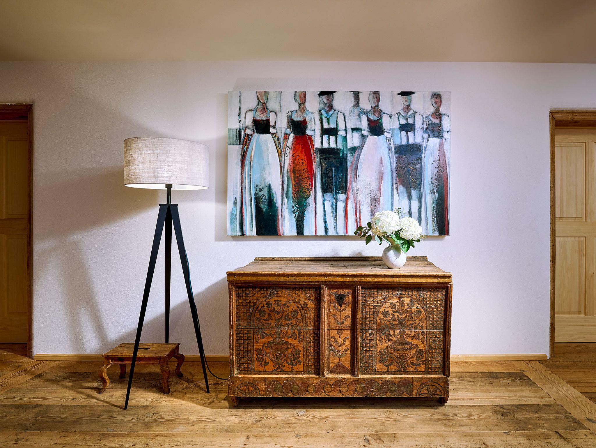 Willkommen auf dem alten Heuboden über dem ehemaligen Gewölbestall am Moierhof Gstadt. In den beiden nach der Sanierung entstandenen Obergeschossen über dem alten Gewölbestall befindet sich heute die luxuriöse 5-Sterne-Ferienwohnung „Heuboden“. Sie ist auf geräumigen 82 qm ein wahres Paradies für zwei Personen. Neben den gemütlichen Wohn- und Essbereichen lässt es sich in der Sonne auf der nach Süden offenen möblierten Loggia wahrhaft relaxen. Hat sich die Sonne an einem Urlaubstag versteckt, geht das Entspannen auf der heimeligen Galerie mit Relax-Liege im Dachgeschoss gemütlich weiter. Ein Wohlfühl-Schlafzimmer im Dachgeschoss, ein Wohlfühl-Badezimmer sowie das durch die behutsam in das alte denkmalgeschützte Fachwerk verbauten Naturmaterialien erzeugte Wohlfühl-Klima machen die gesamte Ferienwohnung zu einem einzigartigen Erlebnis.