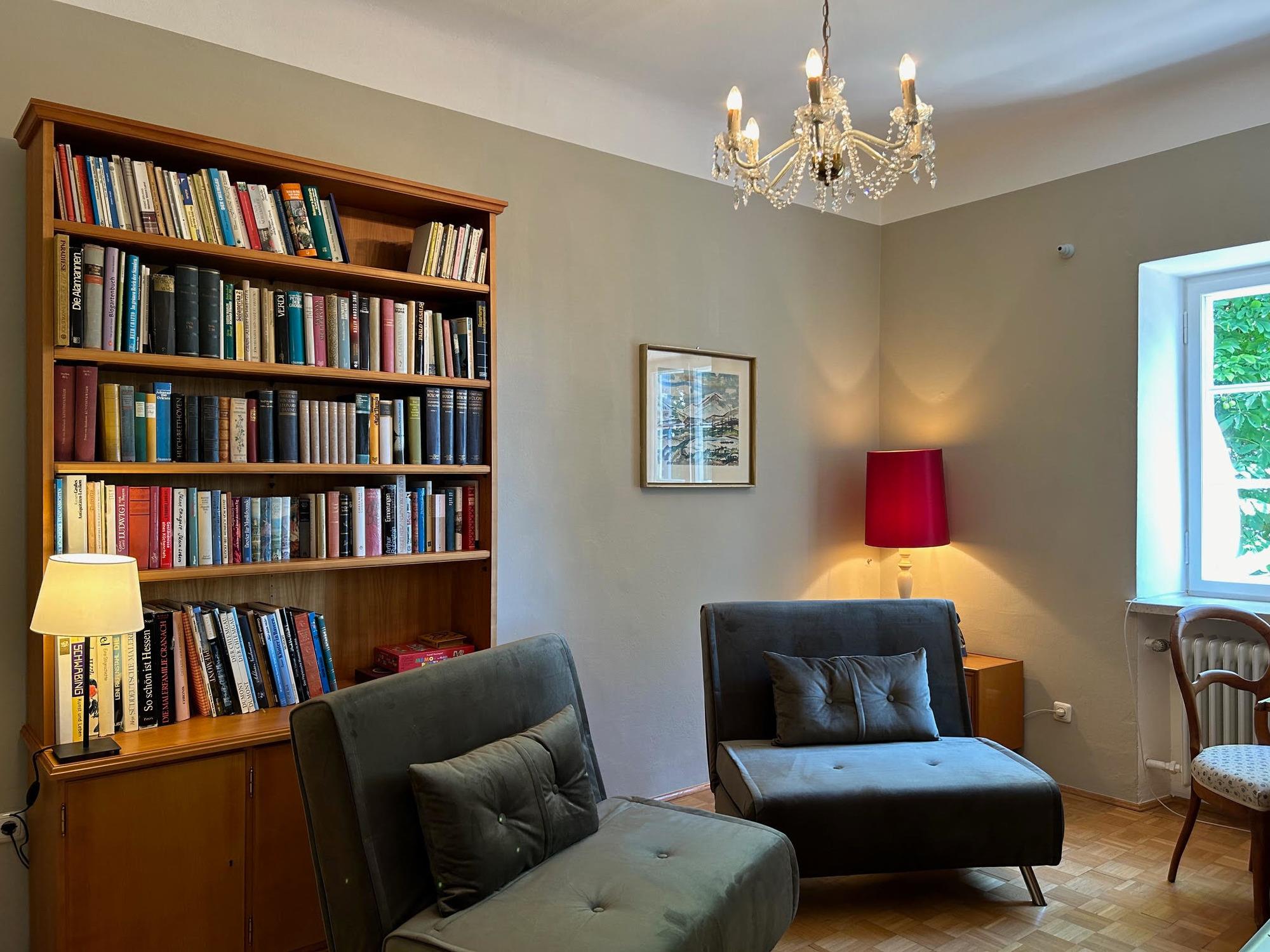 Genießen Sie den Aufenthalt in dieser besonderen Villa mit einem großen privaten Garten mit alten Bäumen. Das parkartige Gelände von ca. 4500 Quadratmetern lädt zum Verweilen und Entspannen ein.