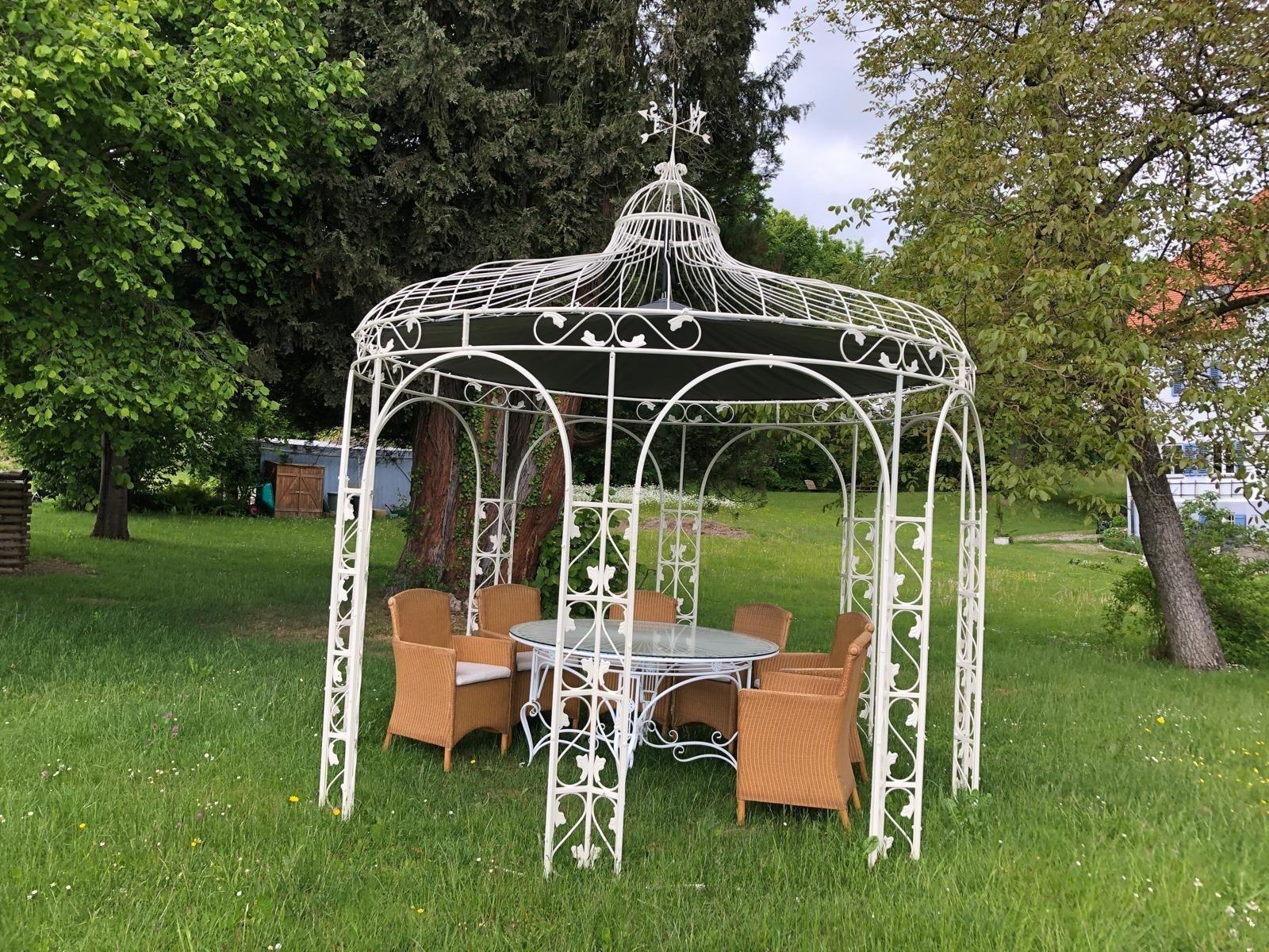 Ein großflächiger Gartenteil zur alleinigen Nutzung bietet Ihnen einen sagenhaften Seeblick rund um den Pavillon, samt großem Esstisch und Loom Korbsesseln. Zudem stehen Ihnen exklusiv komfortable Sonnenliegen zum Loungen, sowie eine weitere Sitzecke mit Bank, bequemen Stühlen und Bistrotisch unter schattenspendenden Riesenfichten an heißen Sonnentagen oder lauen Nächten exklusiv zur Verfügung.