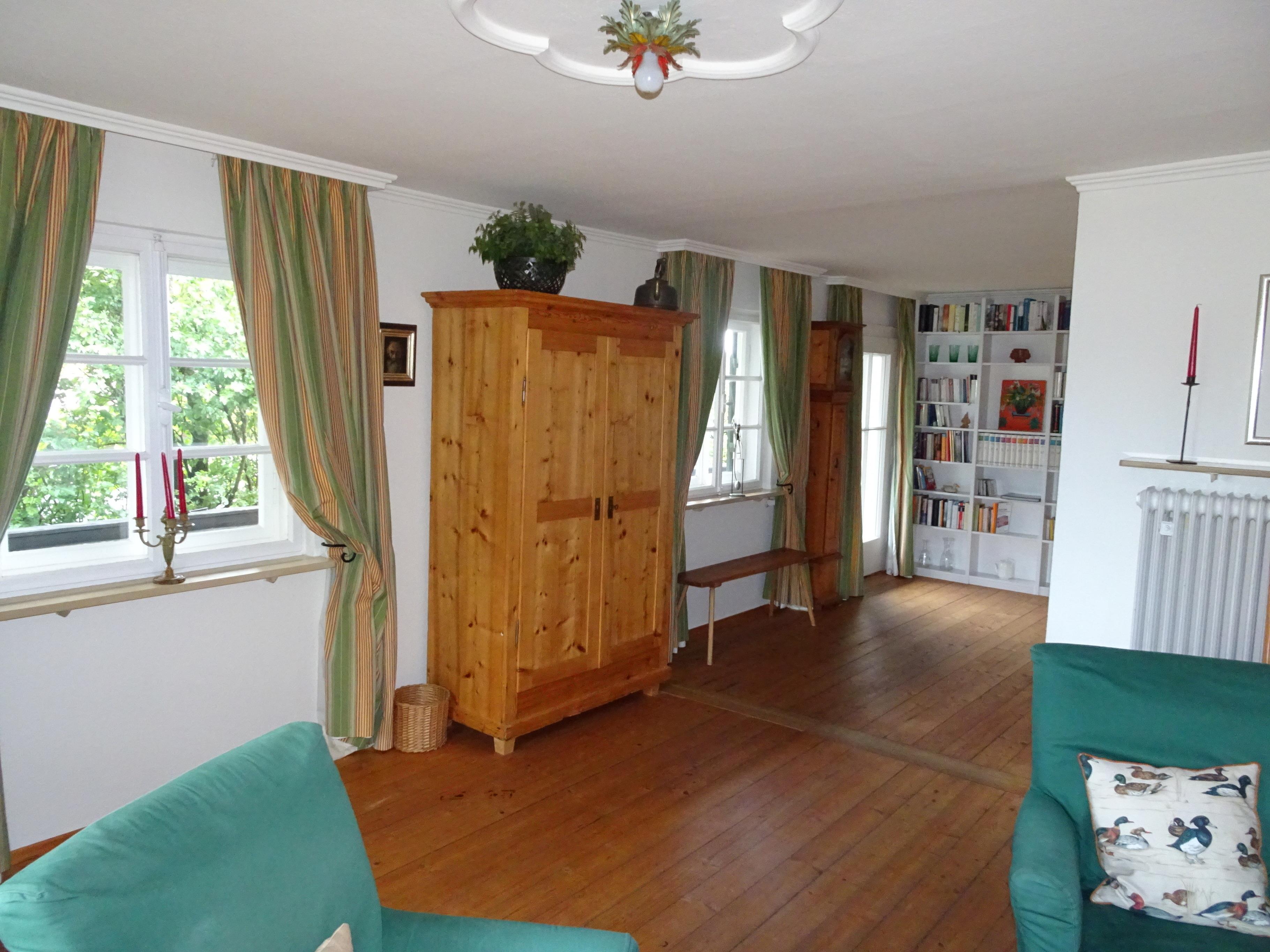 Bei uns finden Sie Ruhe zum Entspannen. Sie können den Blick auf die Berge und auf den See genießen. Sie finden eine hochwertige Wohnung mit einer besonderen Atmosphäre vor. Sie befindet sich in einem alten Landhaus im Landschaftsschutzgebiet. Absolut ruhig gelegen mit einem Balkon über 3 Seiten und einem großen Garten, in dem Sie unter alten Apfelbäumen in einem Liegestuhl die Seele baumeln lassen können oder auch ein Buch lesen. Sie können sich aber auch sportlich betätigen mit Schwimmen, Segeln, Surfen, Wandern, Radeln, Golfen und Tennis spielen.