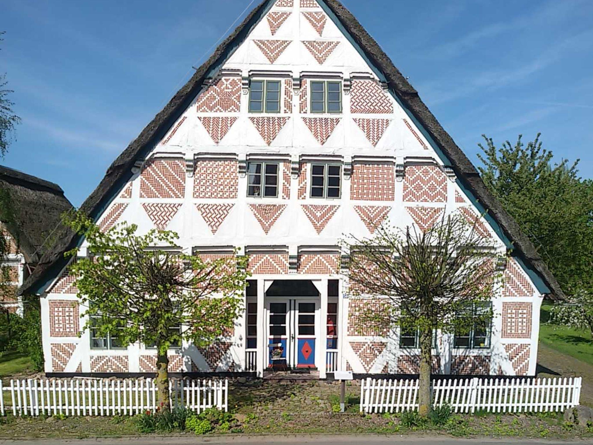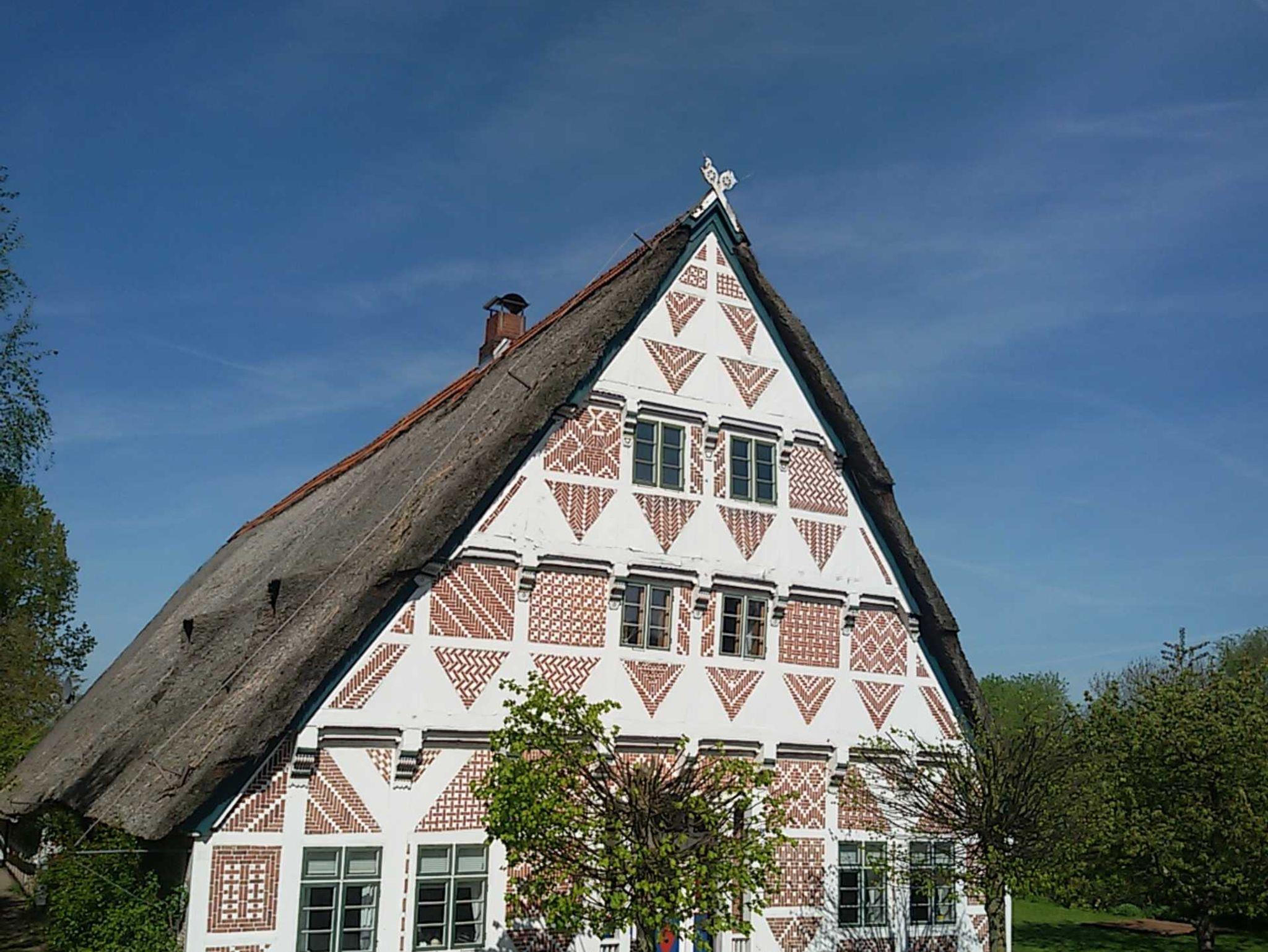 Ferienwohnung im ersten Stock eines denkmalgeschützten Altländer Fachwerhauses aus dem Jahr 1618. Die Ferienwohnung ist ausgestattet mit einem Schlafzimmer Futonbett 140x200cm, einem Schlafzimmer mit 2 Einzelbetten 90x200cm sowie einem ca. 50m2 kombinierten Wohn-/Schlafzimmer mit einem Doppelbett 180x200cm. Das Bad ist ausgestattet mit Dusche sowie Badewanne. Die gesamte Wohnung ist mit Holzdielenfußboden ausgestattet.