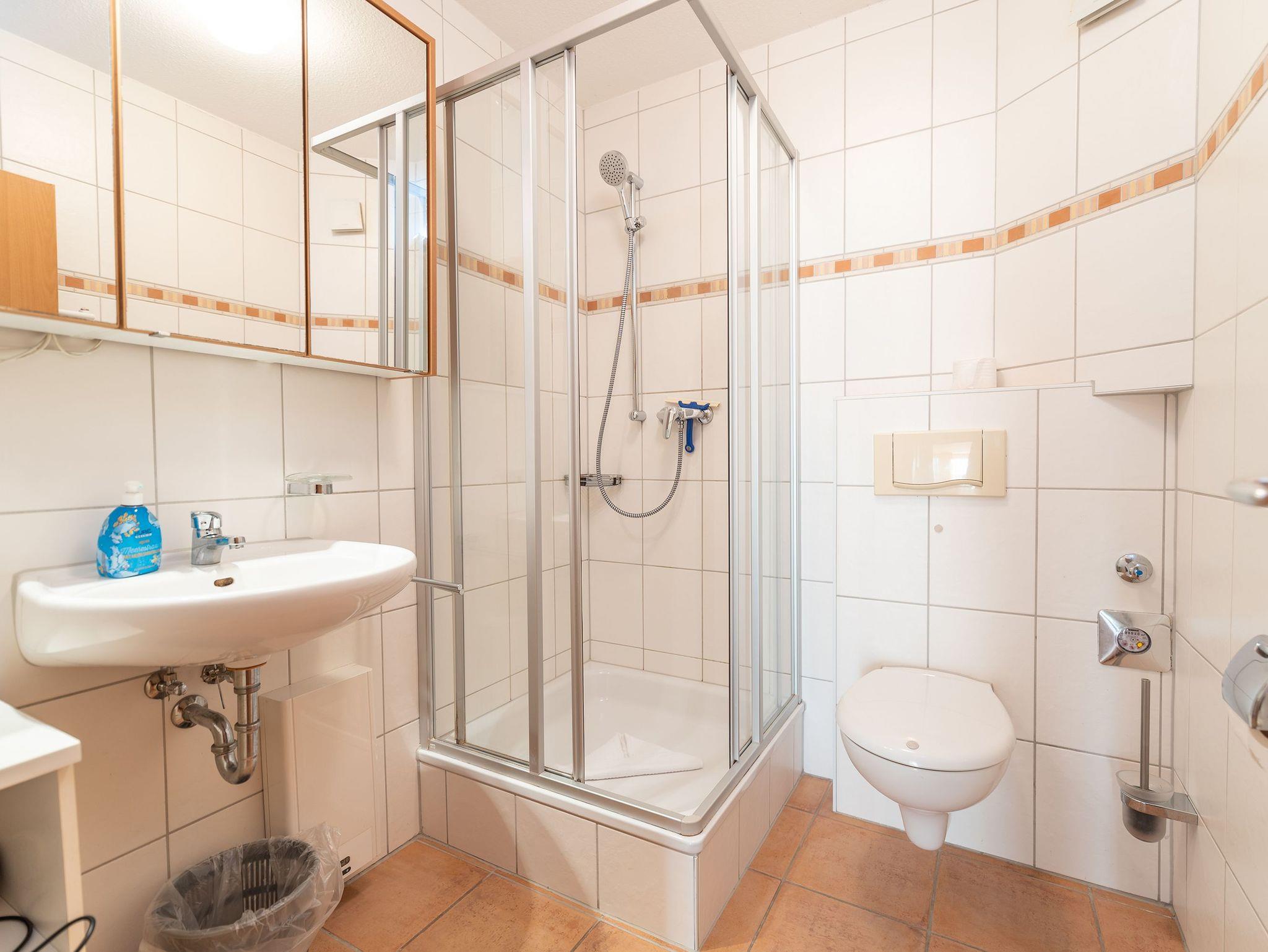 • Badezimmer: Ausgestattet mit Dusche, Toilette und Waschtisch, ideal für Erfrischung und Entspannung.