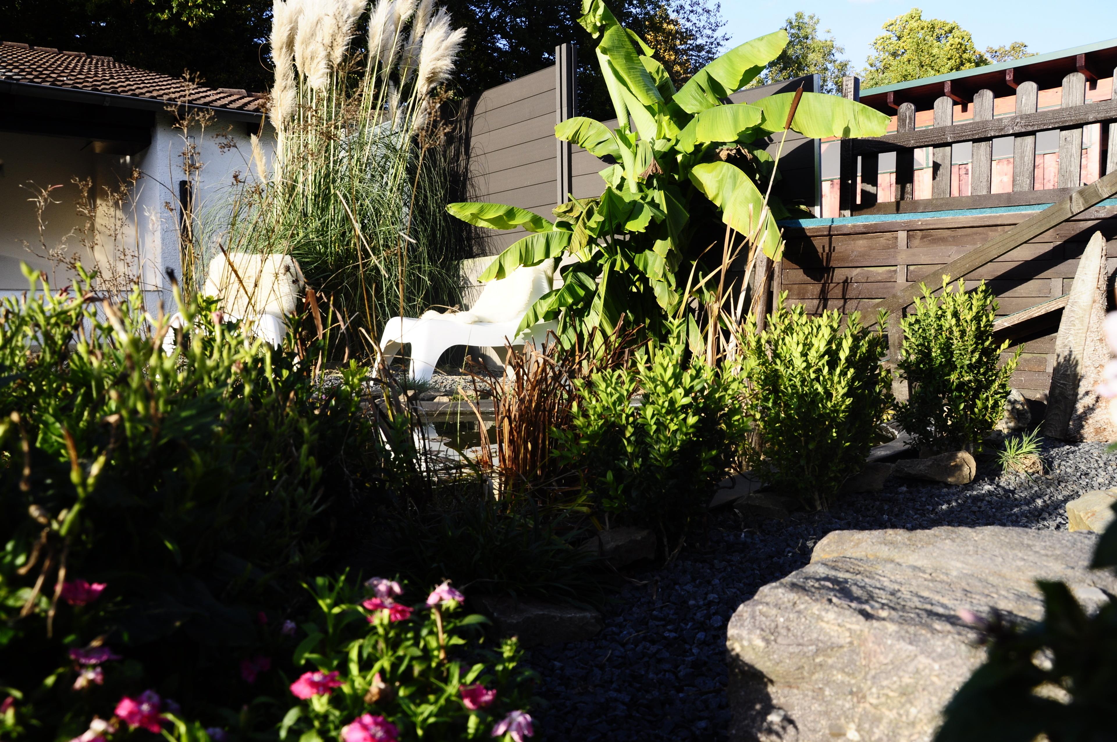 Das über 500qm große Grundstück ist höher gelegen, so dass der Garten mit Teich, Sitzplätzen und überdachter Terrasse viel Privatsphäre bietet. Zudem ist es komplett umzäunt, sprich, Ihre Kinder oder Ihre Vierbeiner können sich im Garten frei bewegen.